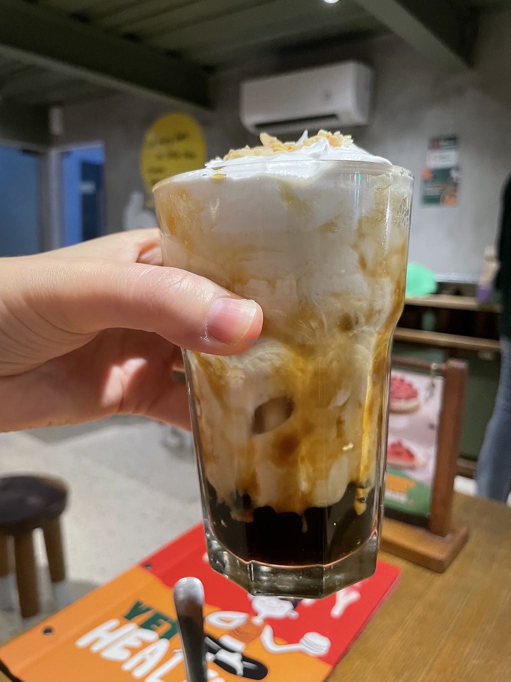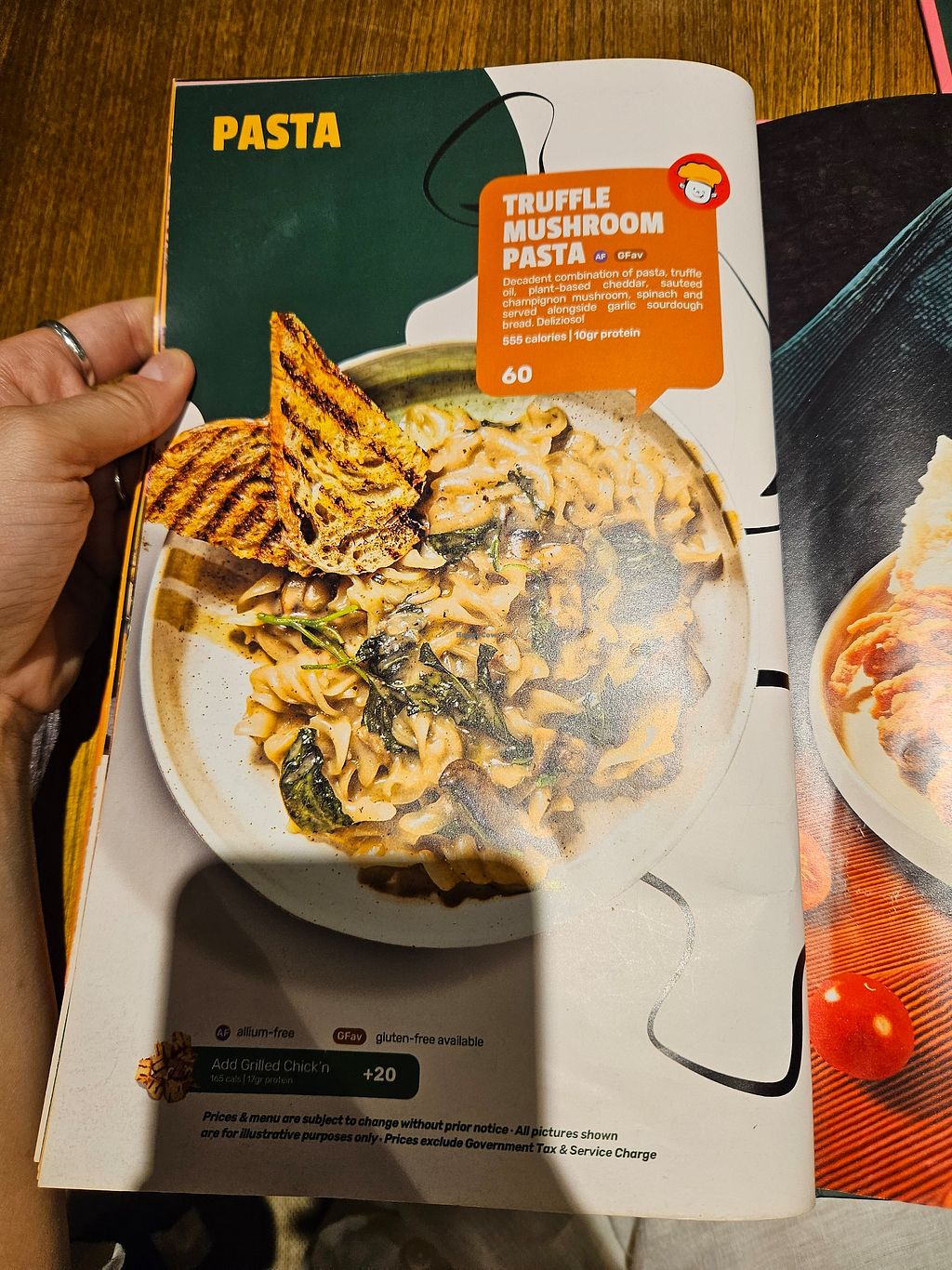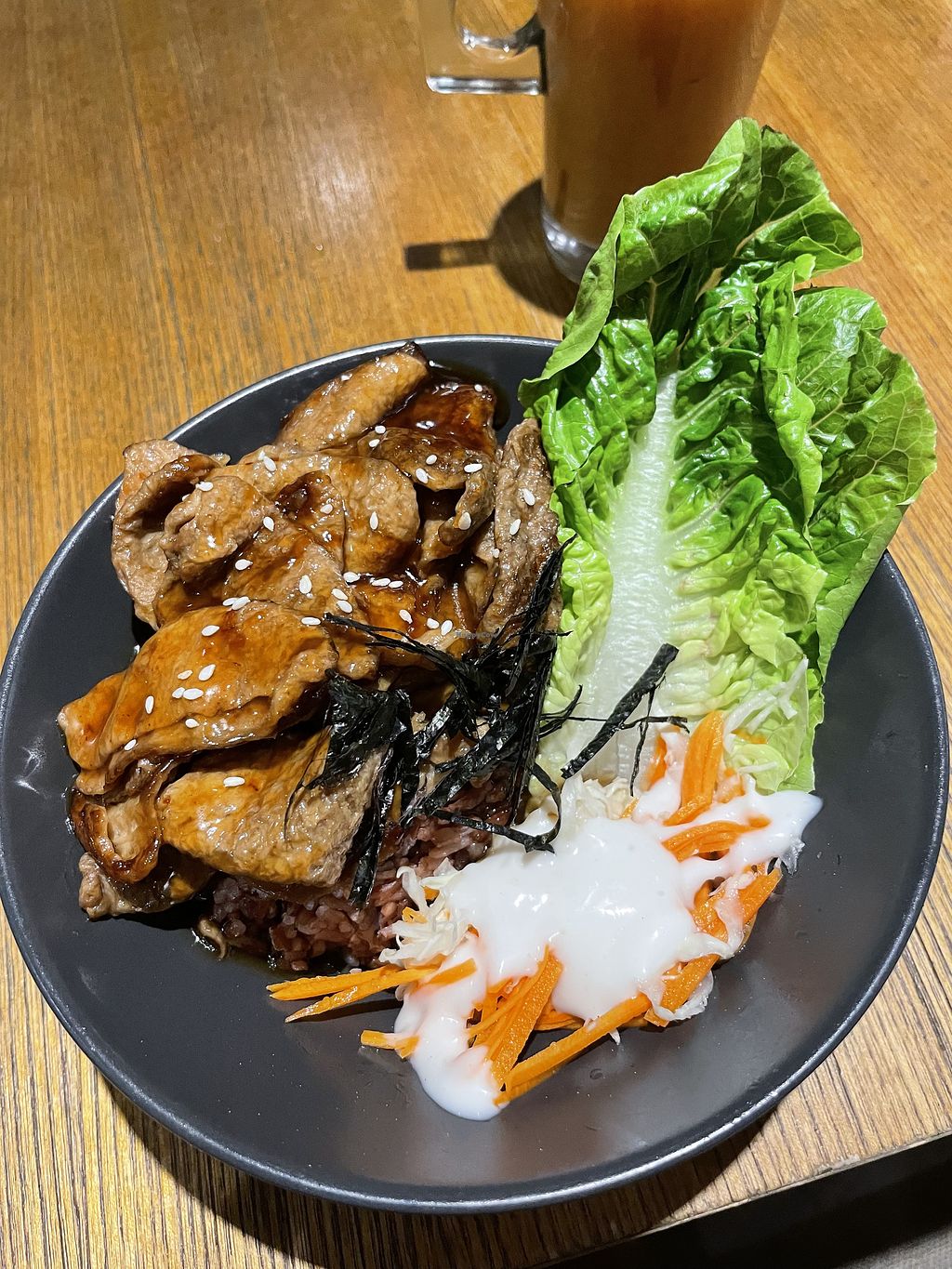 We tried the vegetarian lasagne with Soymilk Brown sugar Boba and protein combo no.1(Reg Vegan Rendang Bowl Moonlight Berry Shake).