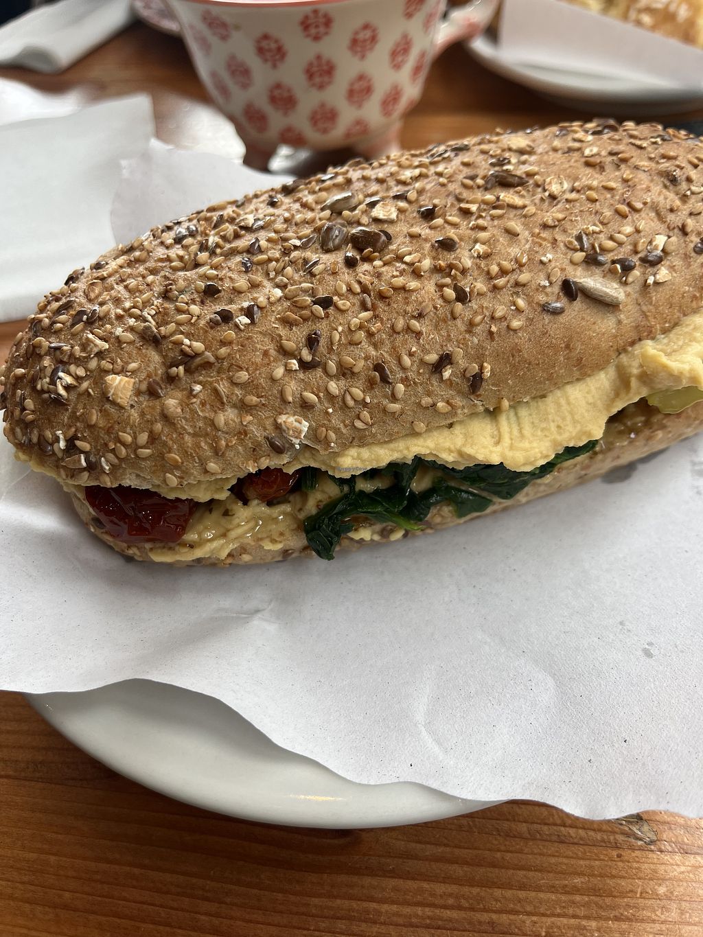 We came on a busy Saturday morning and had the best time. The staff was super friendly and working super fasts the other guest seemed to be so nice to - the whole atmosphere was just very great. There was multiple vegan options, that were clearly labeled. My Sandwich was super delicious (hummus, pickled cucumber, dried tomatoes). Coffee was great too and they even offered a vegan cornetto! If we would live close, we would come all the time!
