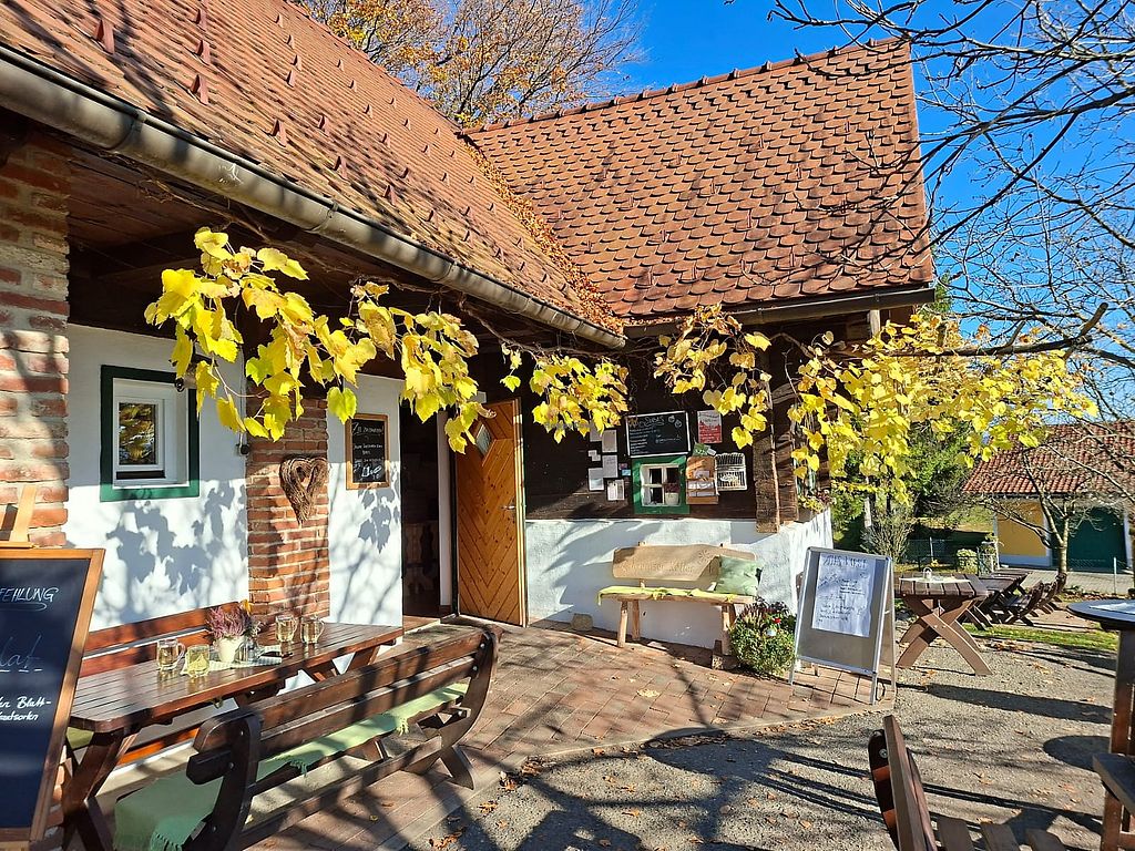Serves meat, vegan options available. This establishment is a "Buschenschank", a traditional Austrian tavern that serves only cold meals sourced from local farmers and its own wine. Vegan items are available, including "Käferbohnensalat" (a regional scarlet runner bean salad with pumpkin seed oil) and "Käferbohnenhummusbrot" (bread with hummus made from scarlet runner beans). An "Herbstsalat" (autumn salad) can also be made vegan by omitting the cheese wrapped in bacon. Open Fri-Sat 15:00-23:00, Sun 13:00-23:00.