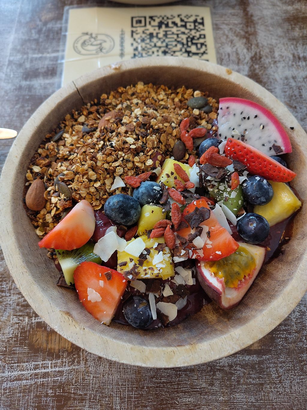 Enough vegan brunch options, I chose the açaibowl and a cappuccino with plantbased milk. It must be a popular place, because people were waiting outside to be seated. It's well worth your money and time! Friendly staff as well.