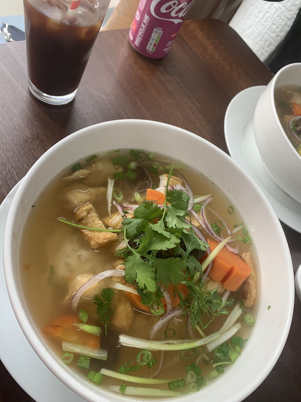 Vegan pho with mushrooms, fake chicken and tofu😄it is on a poster on the wall not in the menu. Other vegan options labelled in the menu.