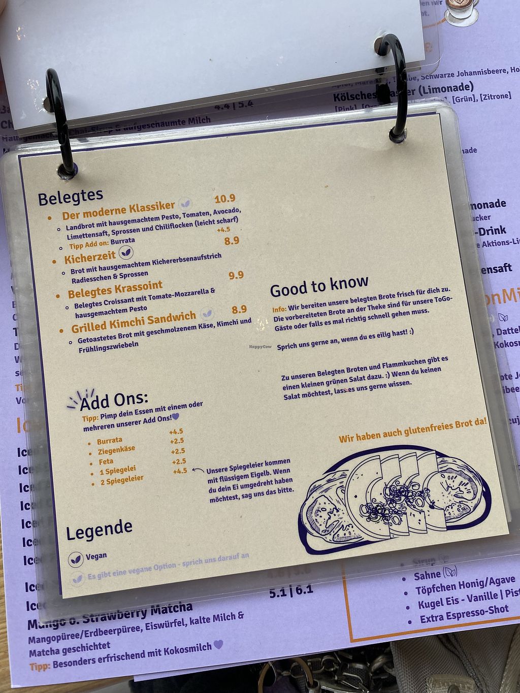 Vegetarian cafe with vegan options which may include breakfast choices, a chickpea sandwich, flammkuchen and more. Open Mon-Fri 08:30-18:00, Sat 09:00-18:00, Sun 09:00-17:00.