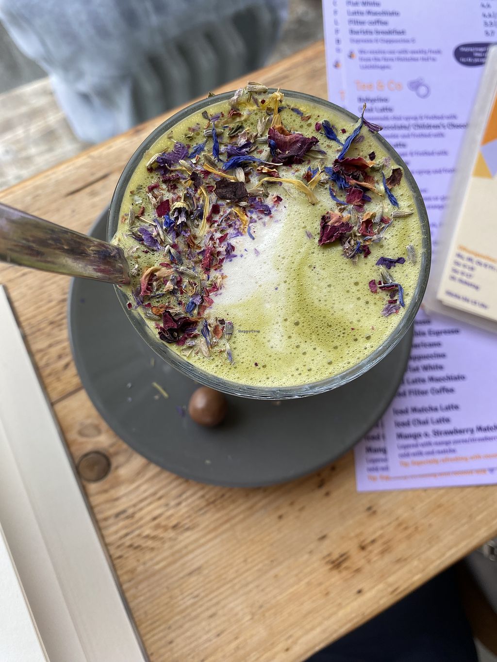 I really appreciate when cafés offer a small treat with your drink like a cookie but unfortunately, the one here was made with milk chocolate. I think it’s not too much to ask for a vegetarian café to make these little extras vegan by default, or at least ask when someone orders a plant-based milk.
