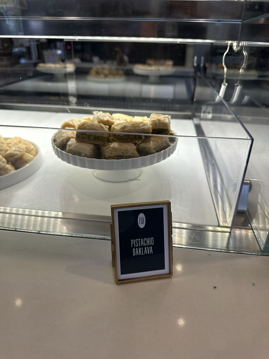 Serves meat, vegan options available. Mediterranean cafe fare, pastries & cocktails offered in a bright, lofty space with counter seating. Vegan items are clearly labeled on the menu, as are vegetarian items. Serves a falafel sandwich, fattoush salad, pistachio baklava, falafel grain bowl, assorted sauces and hummus. Almond, soy, and oat milk for beverages are available upon request at an additional charge. Open Mon-Sat 8:00am-7:00pm, Sun 9:00am-4:00pm.