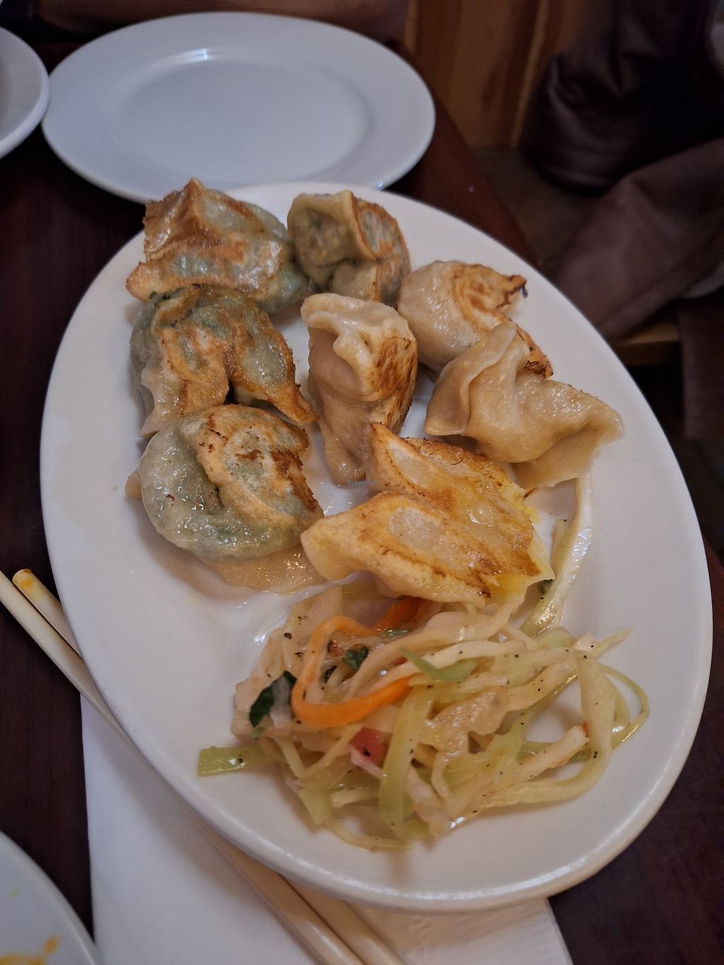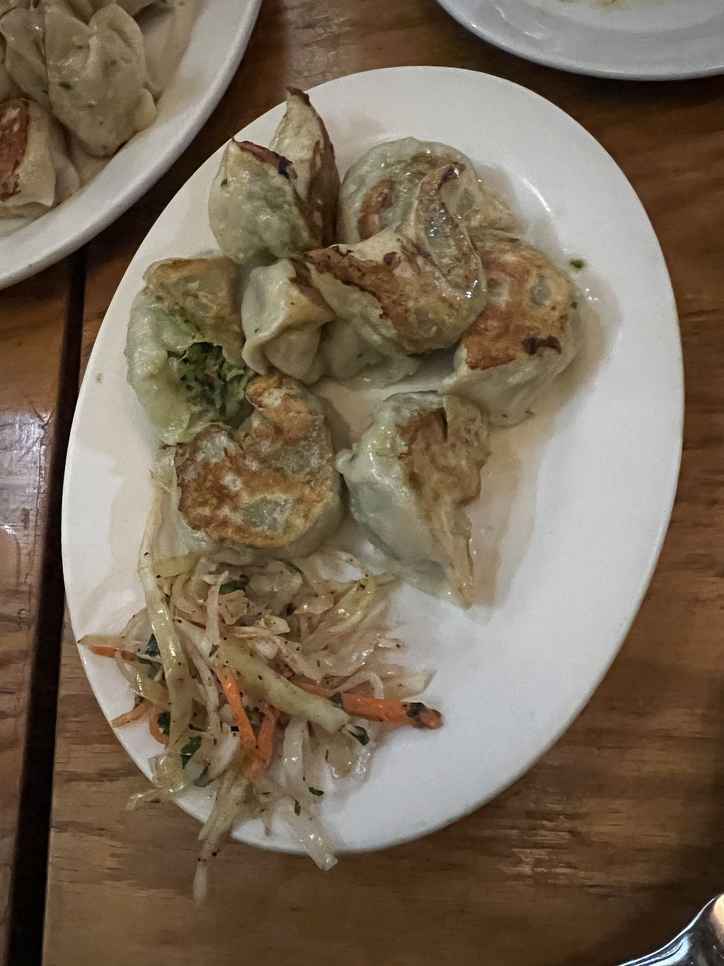 Tried the squash served with dal and rice, potato and veggie momos (they let us do half and half) and the black chana salad. I genuinely liked everything. Medium spice was perfect. Reasonable prices. My only note is this is a small place and it does get loud.