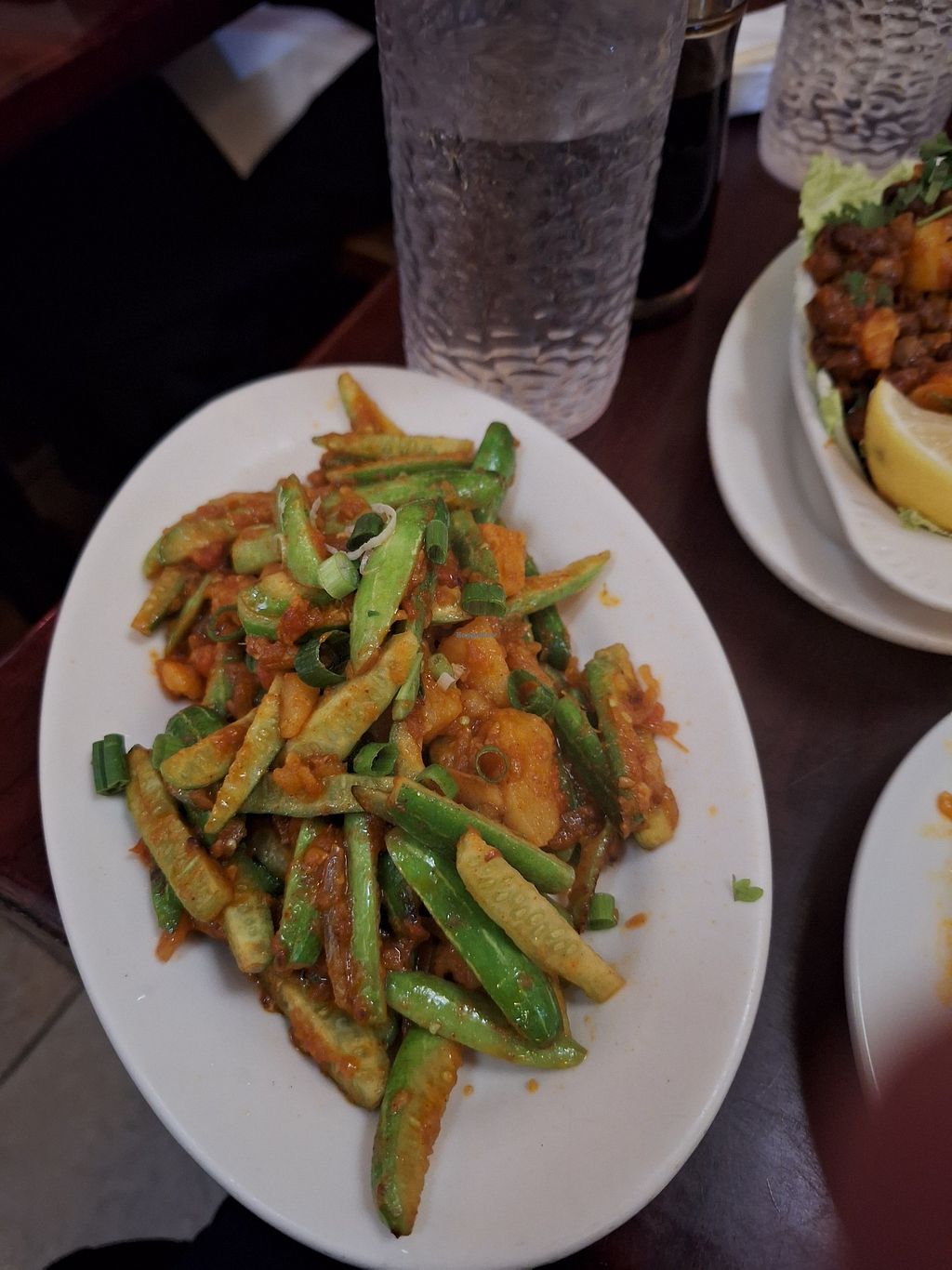 I had Himalayan potato salad. It is great. Tsel Dofu (tofu with veggies) plus some rice. Also great. They can make Thai ice tea with oat milk so that was another plus. Will be back for sure.