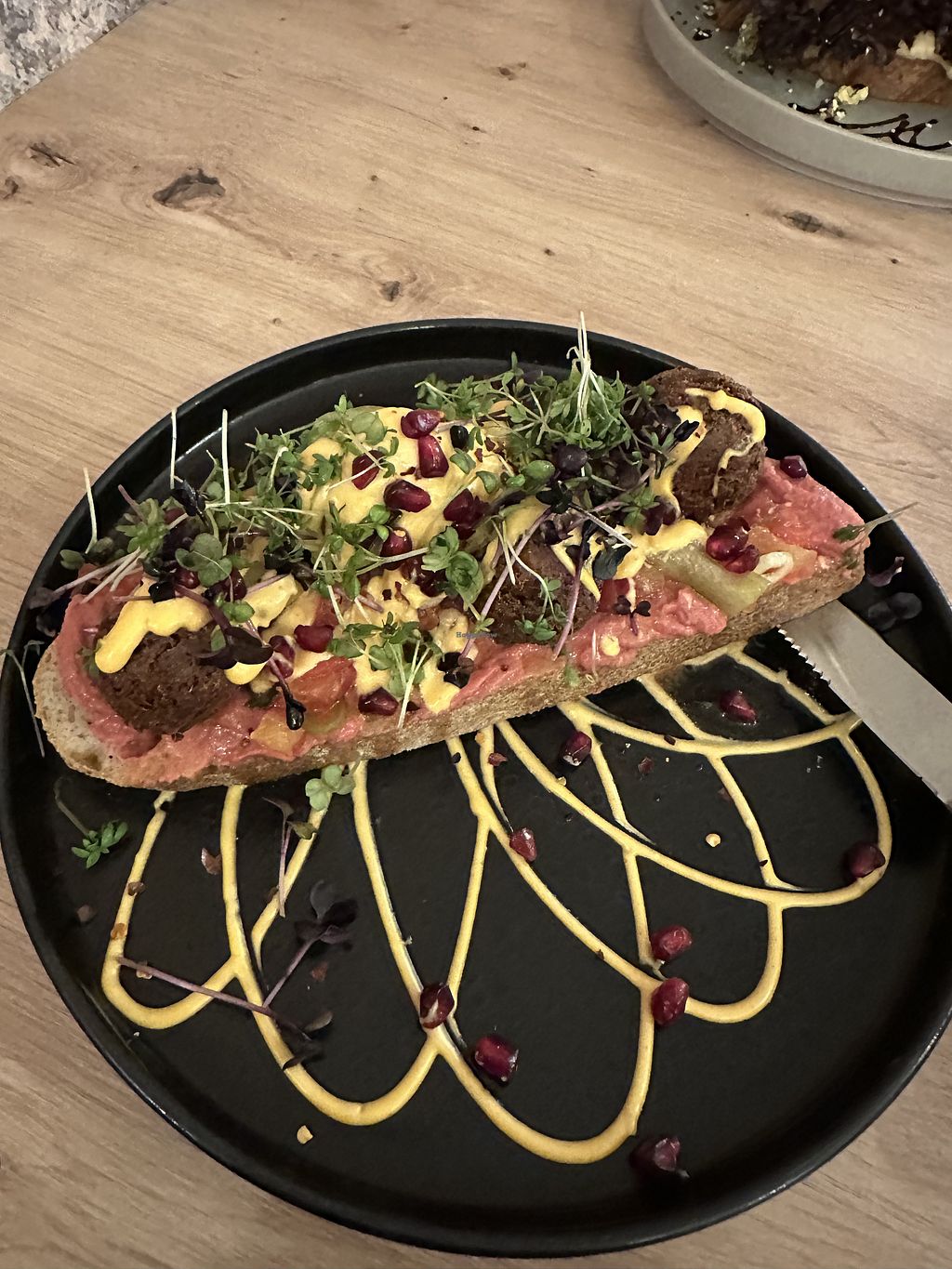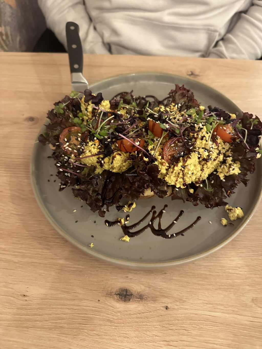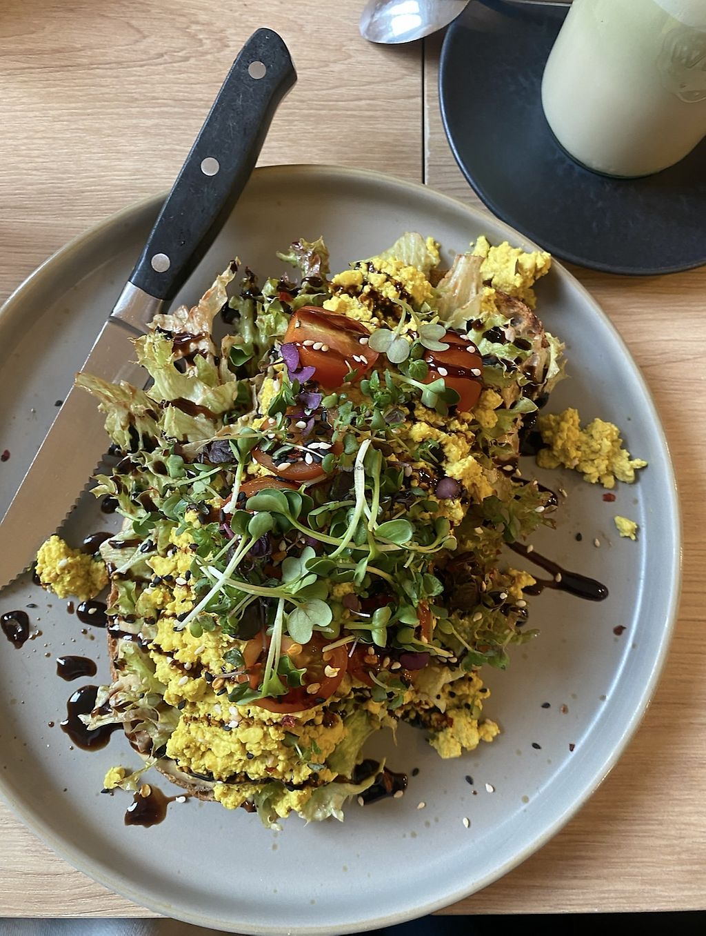 Read moreI had a tasty scrambled tofu on a thick slice of sourdough bread, with hummus, salad and Balsamic dressing. All delicious!