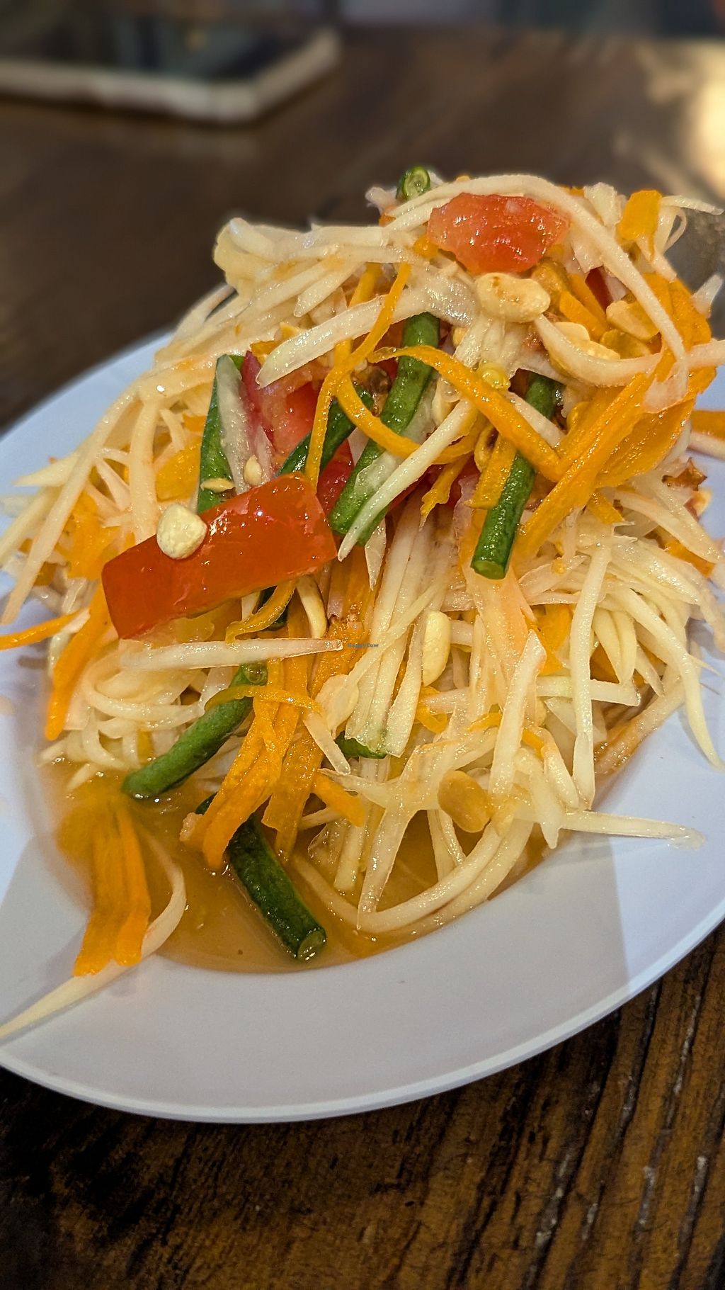 One offering that bordered on dismal was the Som Tum salad. Bright and fresh in appearance, this facade soon crumbled upon sampling as it conspired to leave a peculiar, almost acrid aftertaste in the mouth.