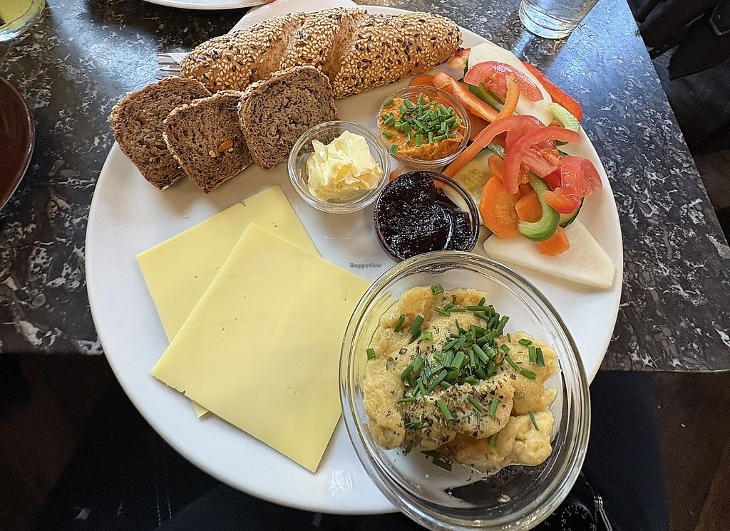 Enjoyed the classic Viennese cafe experience with a full vegan breakfast and pot of tea. Breakfast included a delightfully savory vegan egg scramble, fresh vegetables, red pepper cashew spread, bread, cheese, jam, and butter. Your choice of beverage. Inside of the cafe felt a little worn-down, but in a good way.