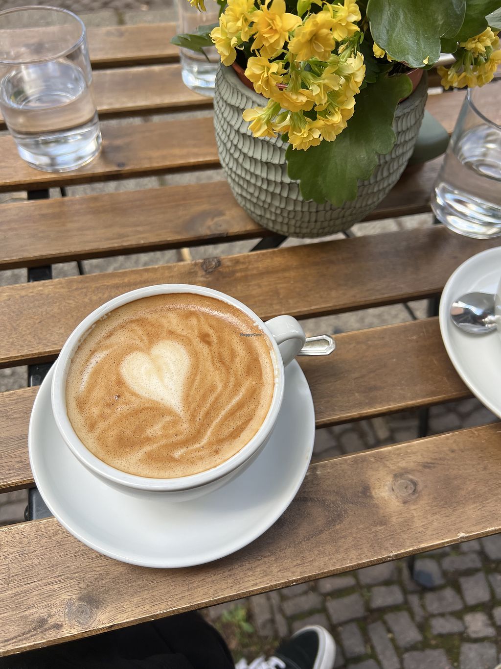 Ein wunderschönes Café, schöner Freisitz an der belebten Käthe-Kollwitz-Straße, leckerste vegane Kuchen & Torten - und der Flat White ist richtig schön kräftig. So genießt es sich wunderbar in Leipzig. 🤩