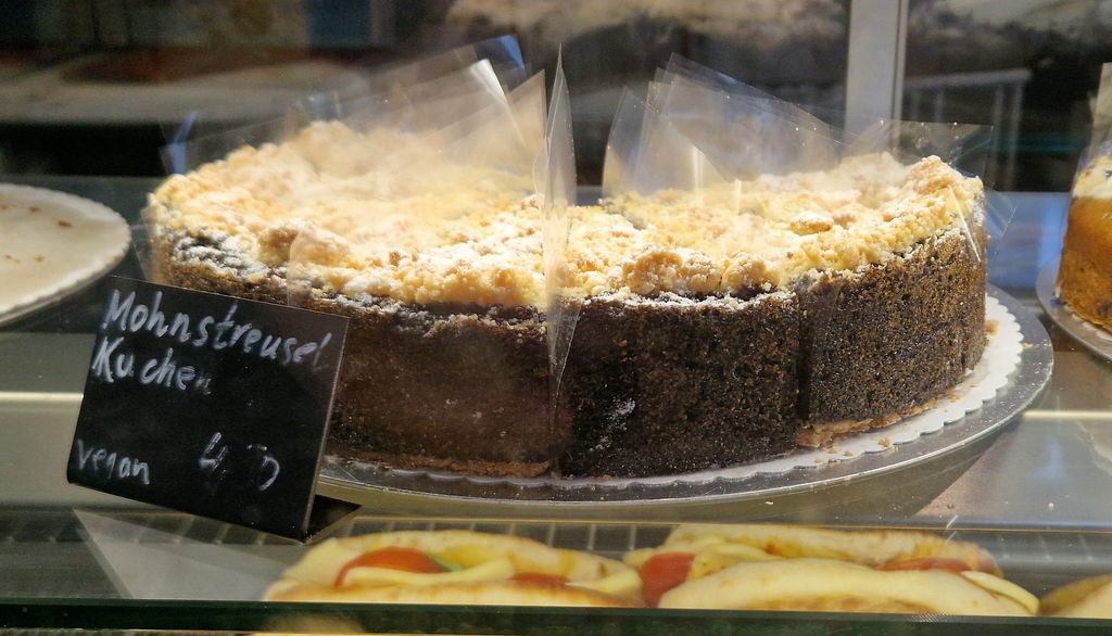 Good place to work, very peaceful and a nice quiet area. They do have quite a few vegan options, and Soy milk as well as Hafer. I tried an apple cake which was nice and fresh. A pistachio banana vegan option also looked worth trying.