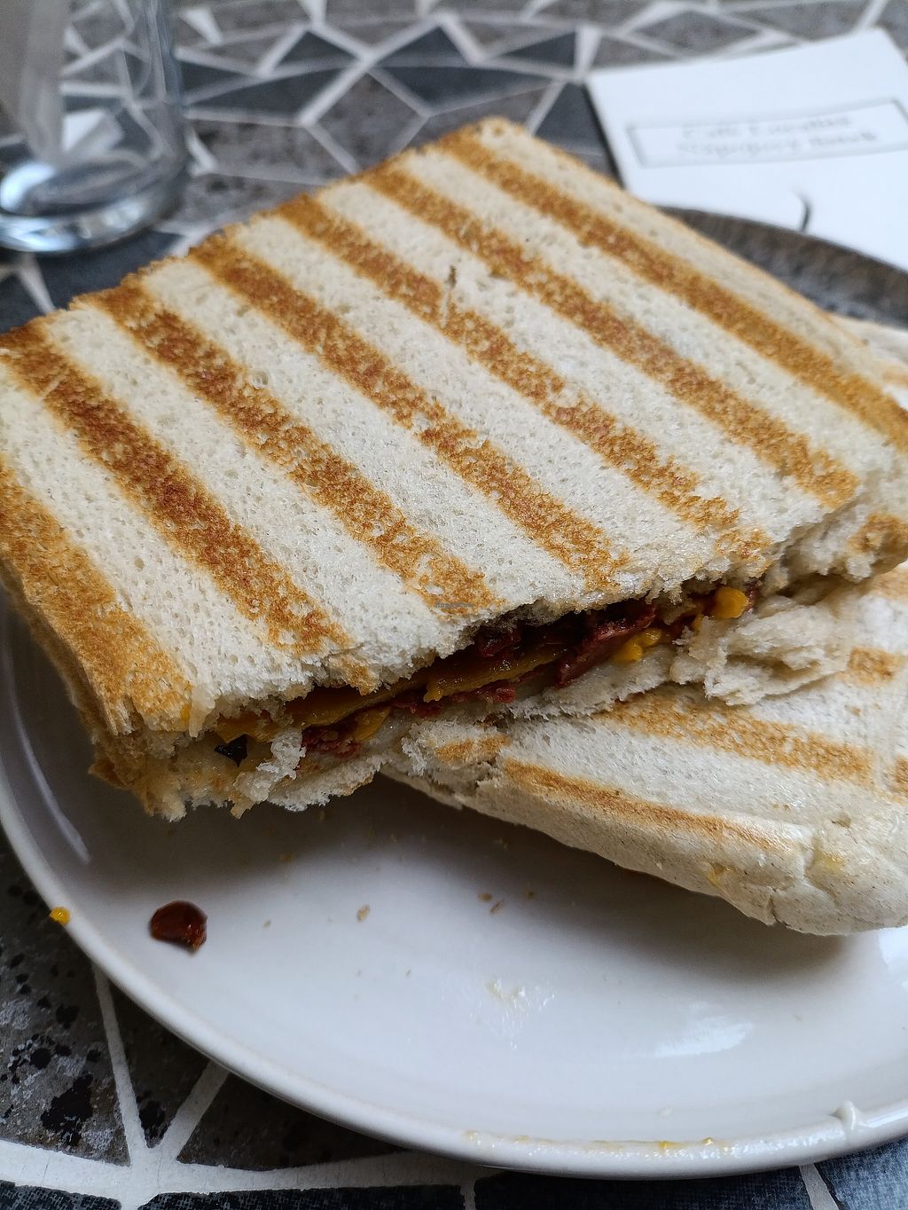 The cocoa with oat milk wasn't watery as I'm used to from other cafés but rich in taste. The vegan sandwich is basically just two slices of toast with vegan cheese and ham but it was delicious and warmed me up on the cold day.