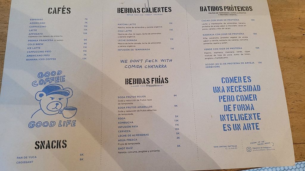 Pros: Muchas opciones veganas, Lugar lleno de plantas y buen diseño , Galería de arte, librería y tienda Mattelsa