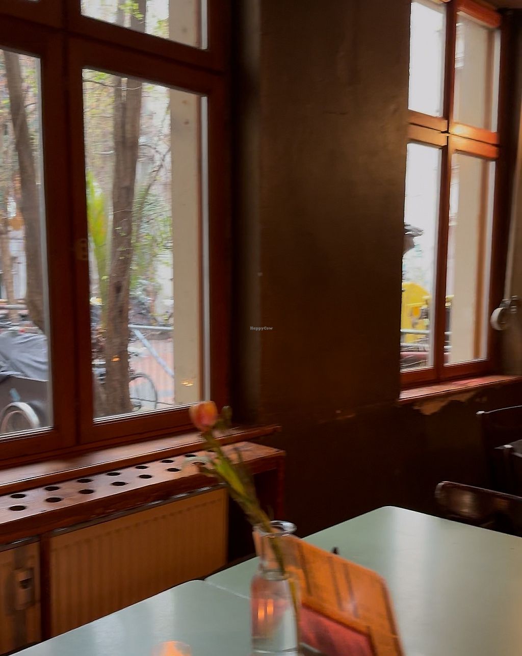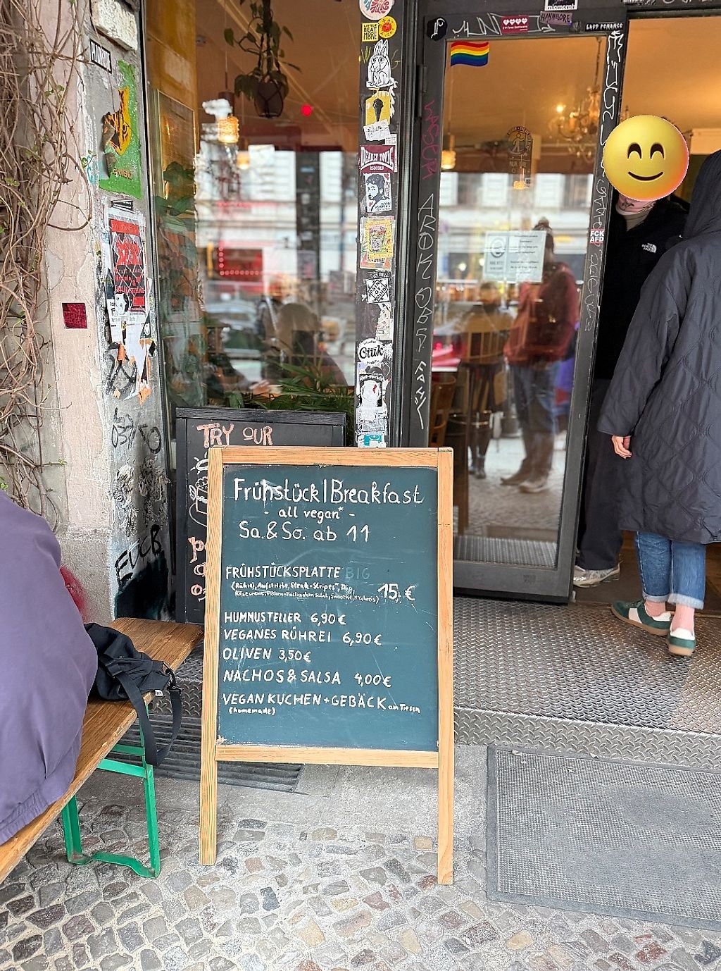 It was unfortunate that I had no chance to eat here properly during my visit to Berlin. I just needed to drink emergency coffee & to use toilet if possible. Didn’t know about this place at all but saw vegan sign and I had to go in. Asked toilet ok, asked lemon tea and they wanted to give me free. How?!!! I didn’t understand. Then I looked around how many people are there already & it seems like community place not just a cafe to eat and drink. My heart melts… and I definitely recommend to my friends in Berlin to go there.