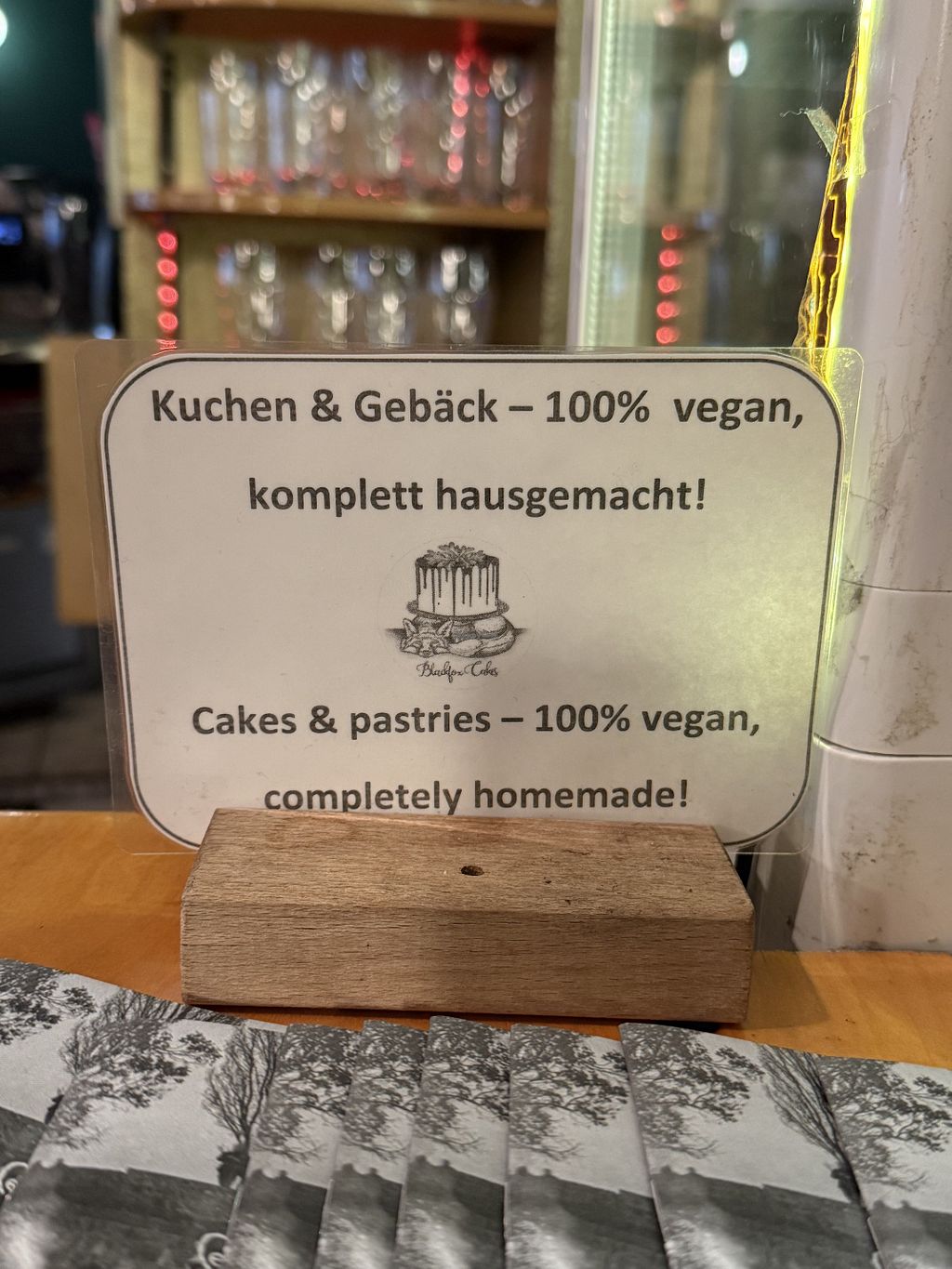 Queer, leckerer Kuchen und leckeres Essen in vegan, was will man mehr? Kann ich nur empfehlen! Die Donauwelle war superlecker.