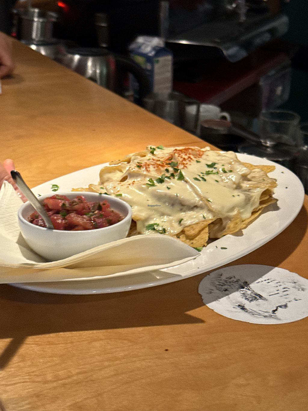 All cakes and muffins are vegan 🍰🧁, they even have savory snacks like nachos with vegan 'cheese' or breakfast with vegan 'scrambled eggs'.