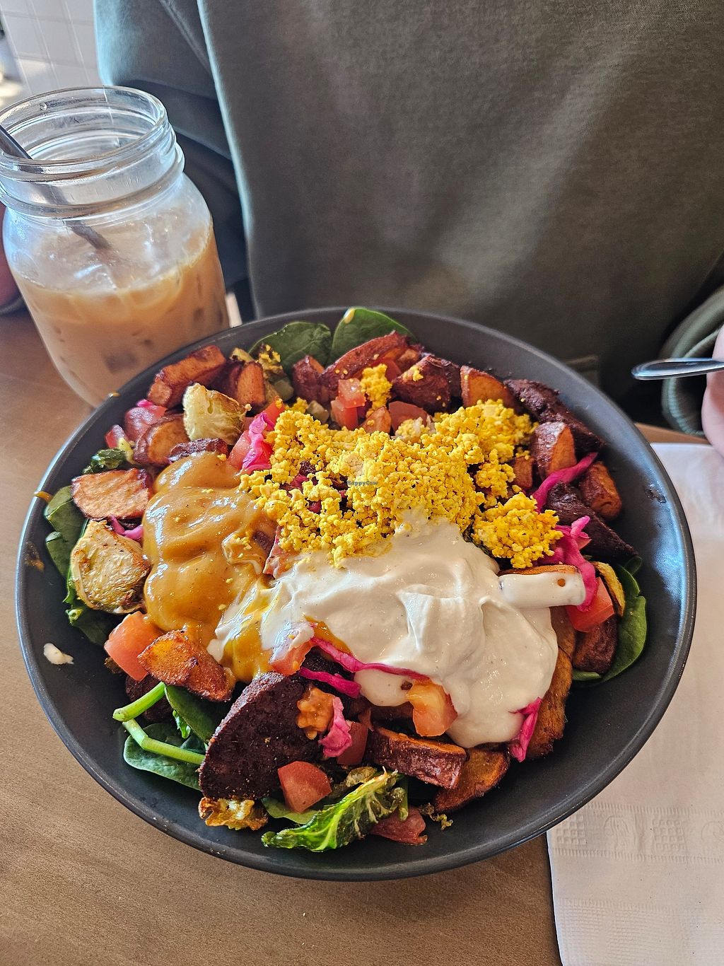 This is the first veg place I ever went to in Edmonton back in 2018, and I couldn't stop dreaming about it until I returned in 2021! It was even better than I remembered. Everything is delicious, and the interior design is my plant-loving, twinkle-light café fantasy. My all- time favourite is the Open Secret Bowl (which I think has been removed 😭). I also love the Breakfast Bowl! Plus their desserts and drinks are amazing. You really can't go wrong here 🥰