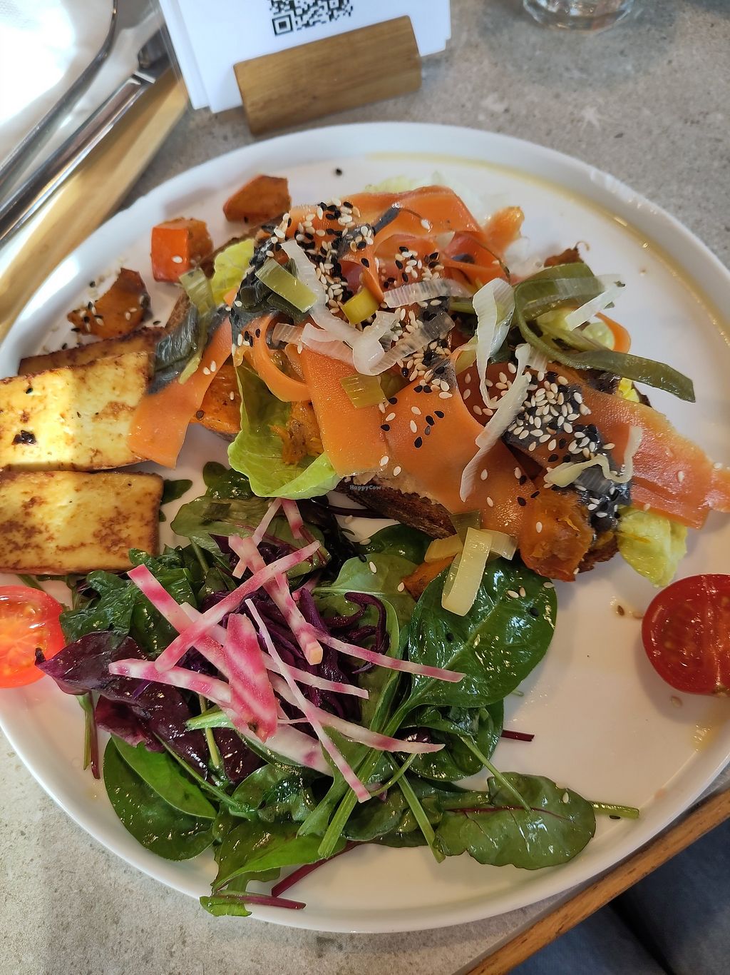 I ate only one bowl, but it was the best 🥣 I ate for a long time! with fresh mango , ginger, tofu, and reddish. fir desert, I ordered the afugato . very friendly and English speaking stuff. very lovely place to sit outside