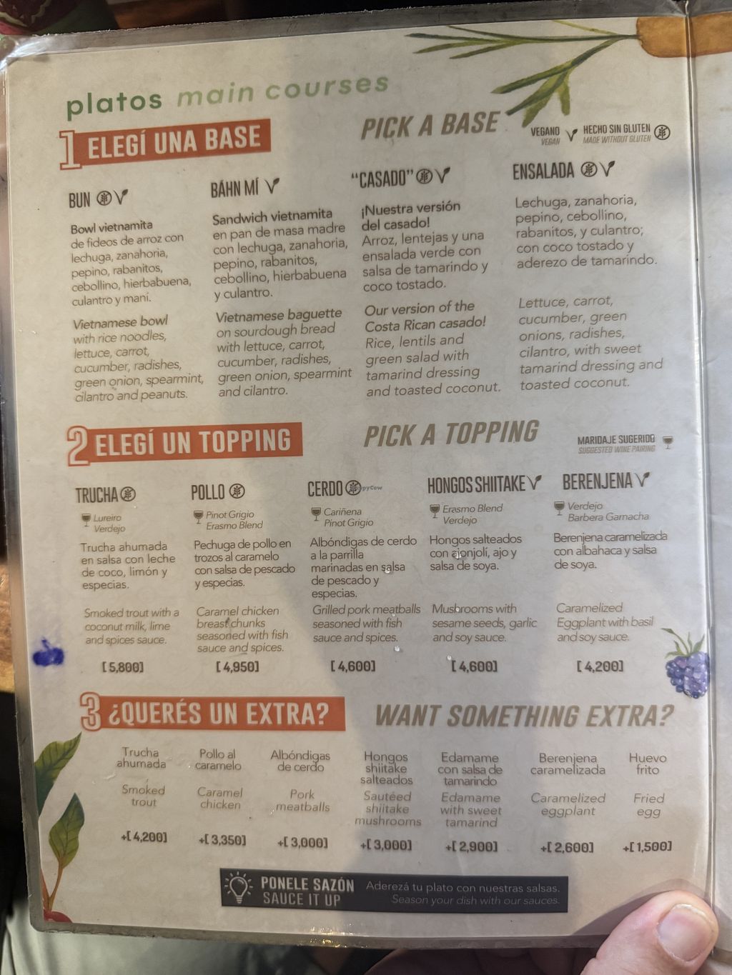 Il y a 4 bases, et deux toppings veganes. Jai testé le Ban Mhi avec aubergines, c'était très bon même si peu pratique à manger.