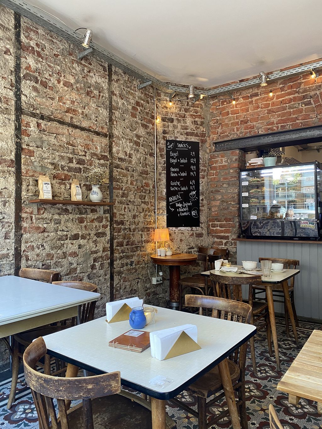 Very tiny café, staff was very friendly , huuuuge variety of vegan cakes, not that many savoury options in comparison, but they have a range of quiche, panini and bagels with different fillings. Everything we tried was wonderful. Excellent matcha latte as well!!! As a vegan cake addict, I will definitely come back.