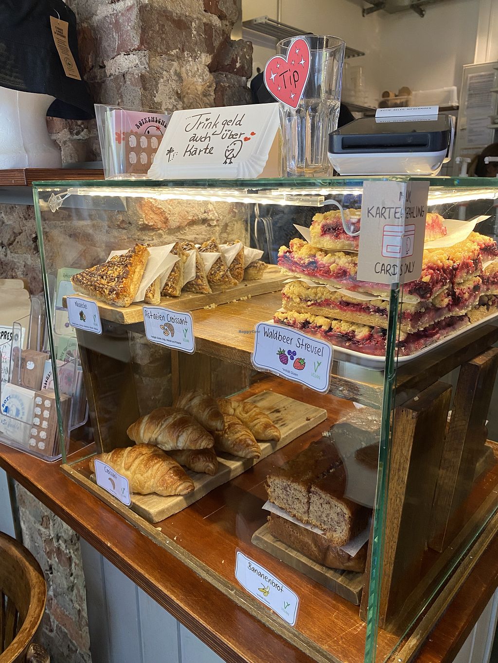 Big selection of vegan cakes and tortes, as well as savoury stuff like quiches, all of which are really good. (Some of the pastries are a bit too sweet, though.) Will certainly go there again when in Cologne.