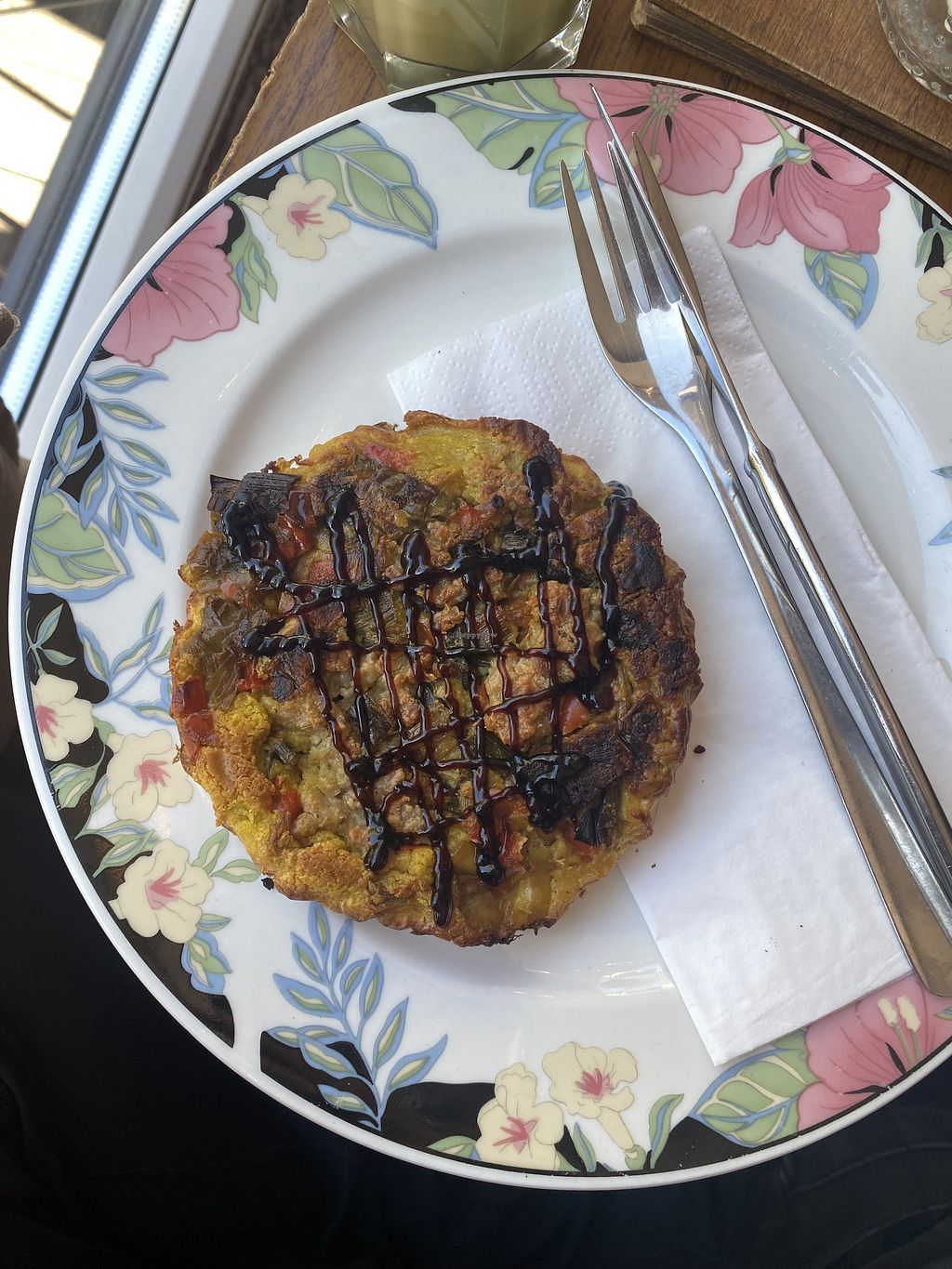 Wir teilten uns zu zweit ein Panini (Keese-Tempeh) & eine Quiche (Karottenlachs), welche uns von der Bedienung netterweise auf zwei Tellern halbe-halbe gebracht wurden. Auch der Iced Matcha war sehr gut, ich fands vor allem schön, dass im Vorhinein gefragt wurde, ob die standardmäßige leichte Süßung in Ordnung wäre. Insgesamt hatte das Café auch eine angenehme Atmosphäre & ich würde definitiv wiederkommen.