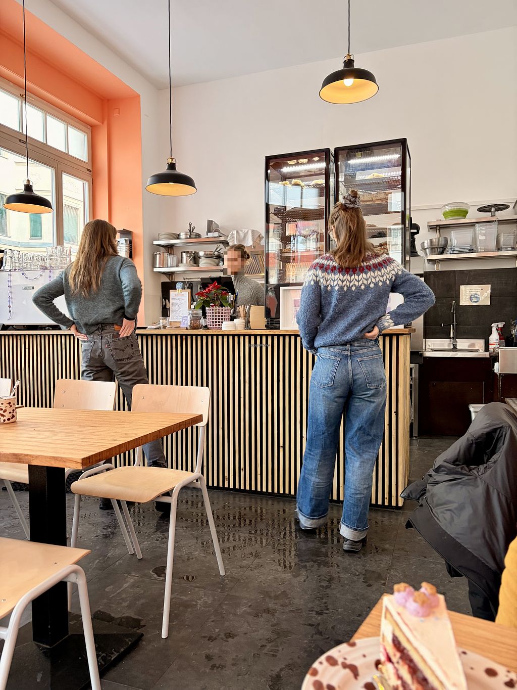 Dass das Café Schwestis ein tolles Café ist, merkt man auch daran, dass die Plätze sehr begehrt sind. Heute hat es aber geklappt. Es gab für uns Burritos, Pflaumen-Sahne-Torte, Cappuccino & Matcha - beides mit Erbsenmilch. Wer Mandel-, Soja- oder Hafermilch lieber mag, bekommt auch diese auf Wunsch.