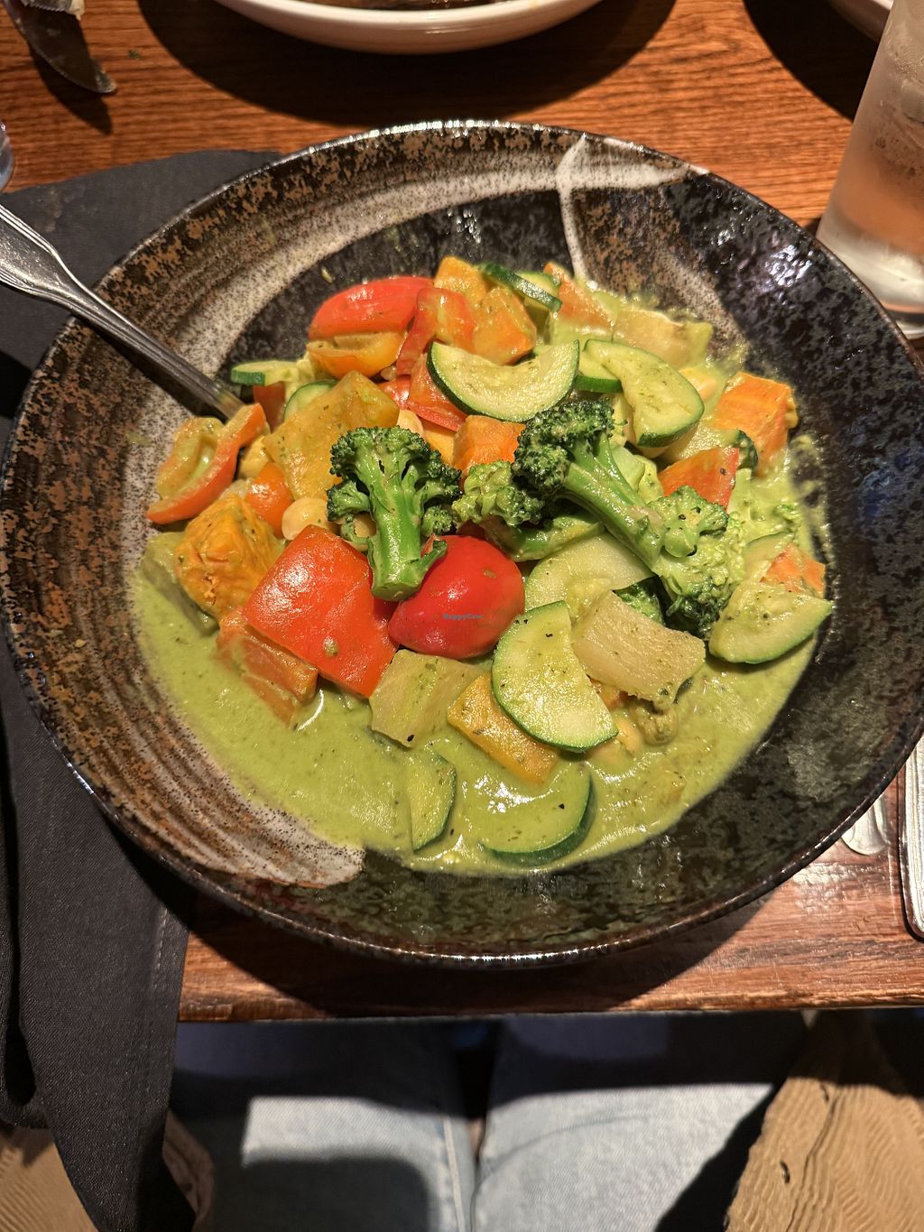 Great food. Soup of the day beet soup was amazing. Dumpling appetizer also fantastic. Eggplant lasagna and curry bowl both terrific. Very large portions. Atmosphere good, has outdoor seating, plenty of parking.