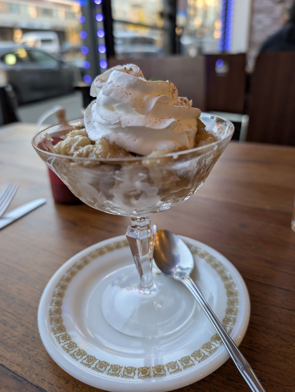 Bhaktsa-Marku, pasta brown sugar with butter. Whipped cream topping added! Want sure what to expect but nice tasty finishing touch. Chewy and sweet small pellets of pasta.