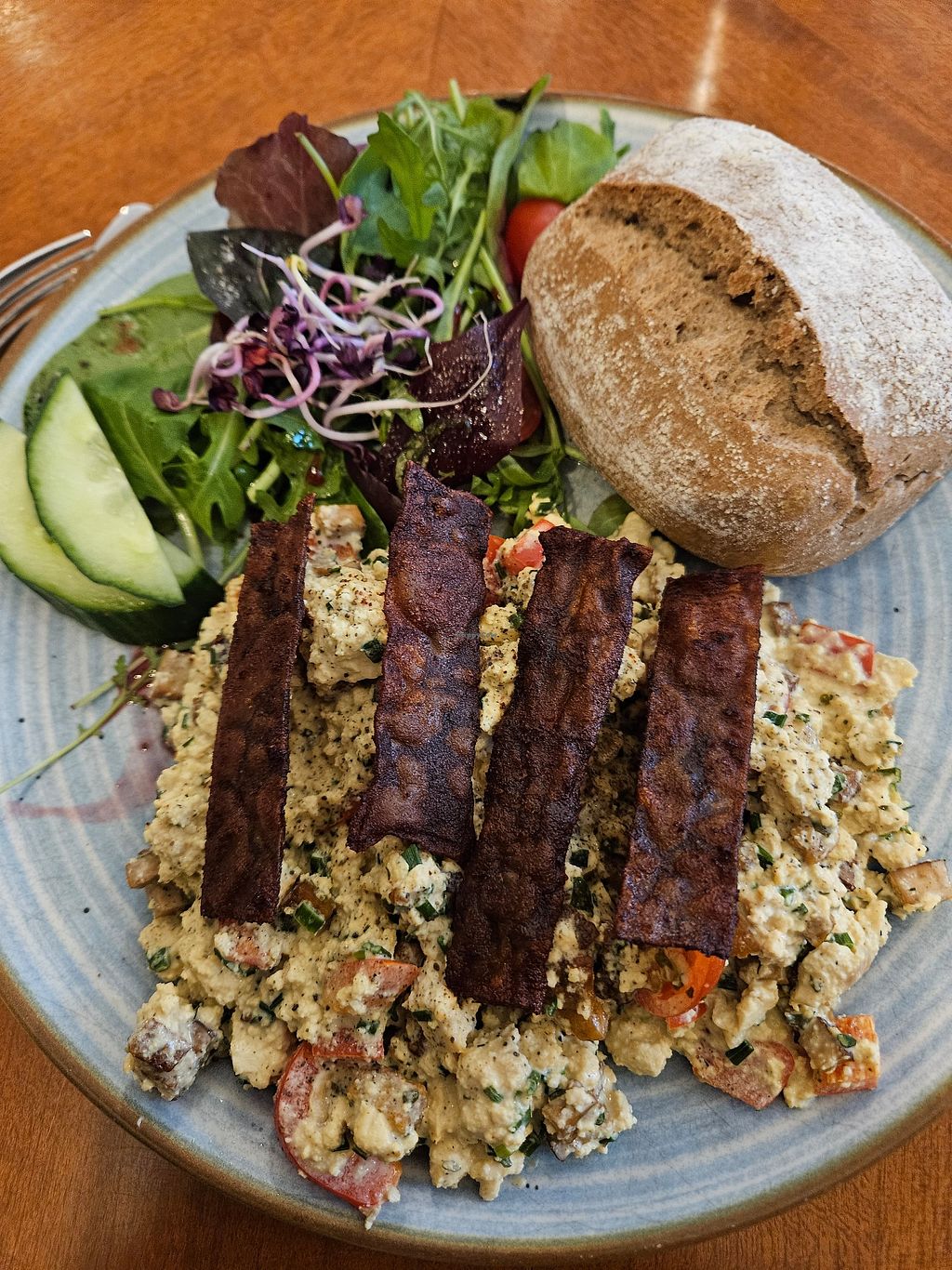 Habe hier vor Jahren schon den ersten veganen Speck zum Frühstück gegessen. So lecker. Auch die Kuchen so so gut! Und super gemütlich eingerichtet. 10/10! 🥰