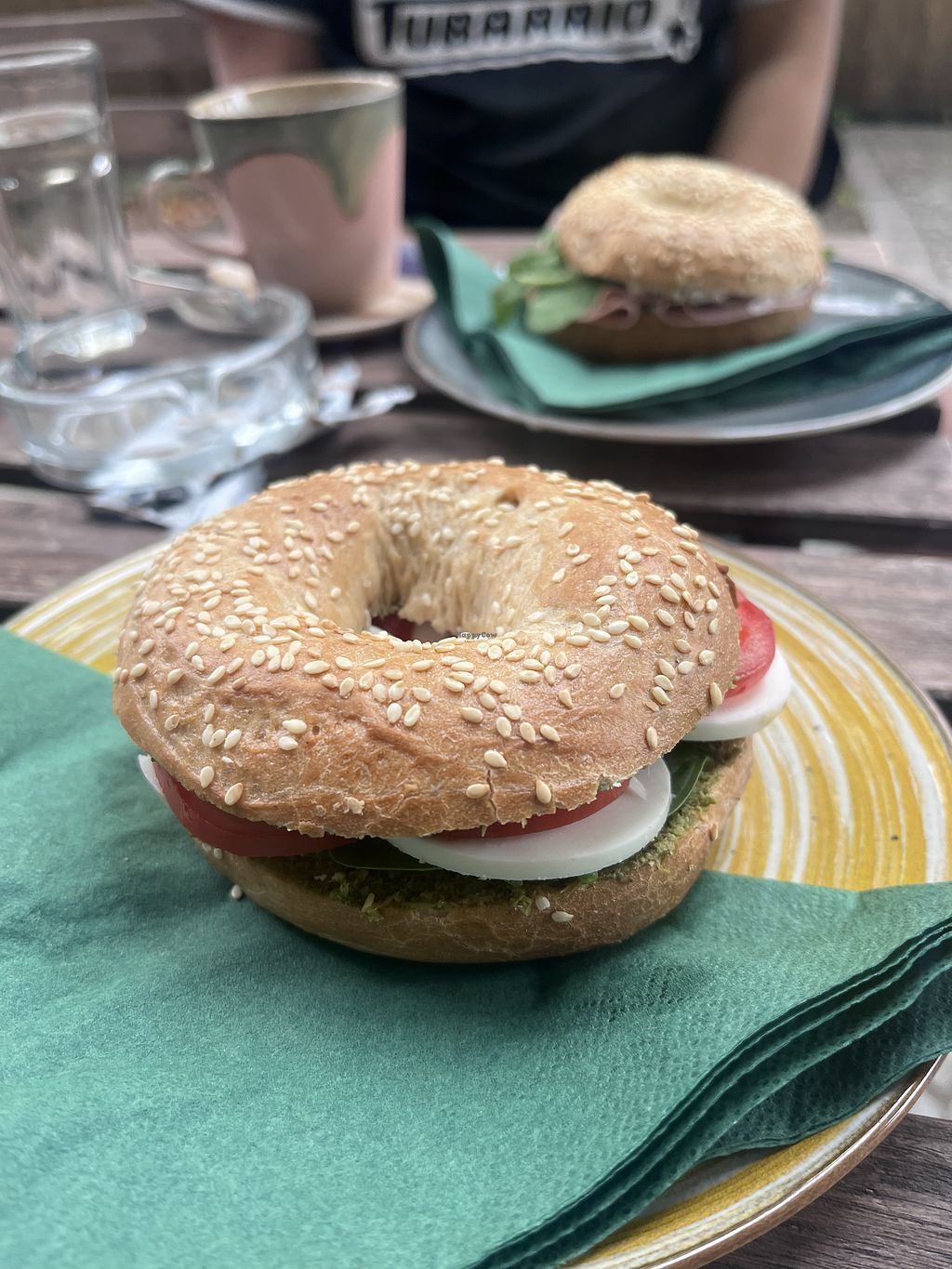 Cosy little place with nice service, very good coffee and bagels (we had tomato mozzarella and salmon). Would recommend and come again!