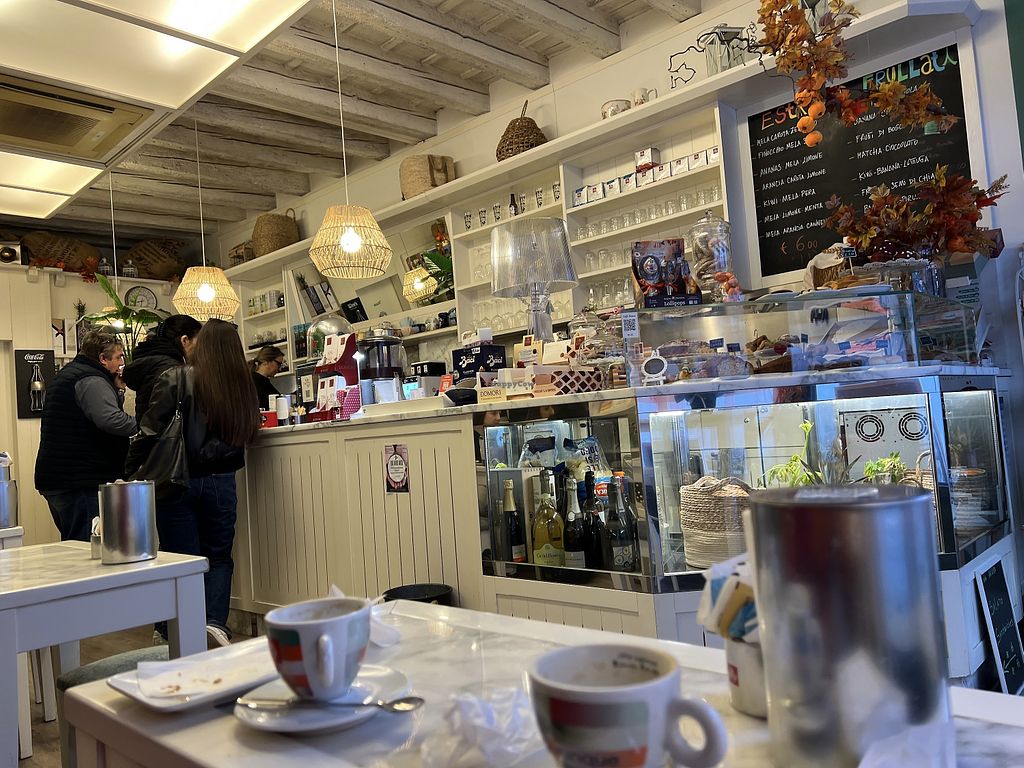 Bright and chill cafe with a feminine vibe. Various vegan brioche pastries available. Latte di soya, latte di avena, and latte di mandorle sono opzioni per cafe latte o cappuccino.