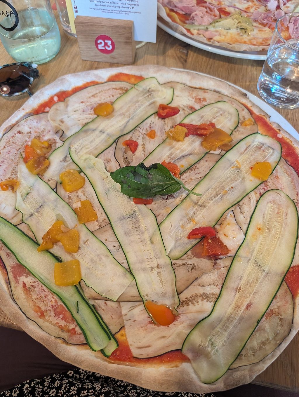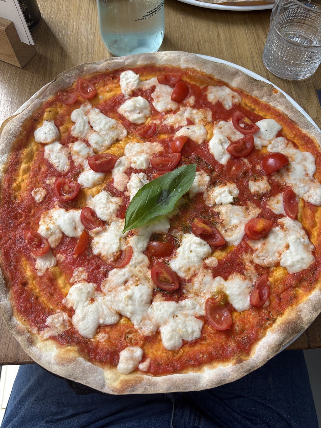 The pizza was amazing (had the vegarita), it comes with a very thin crust. The pizza is very big, so you won‘t be hungry afterwards. If there is room for a sweet, try some of the dolci.