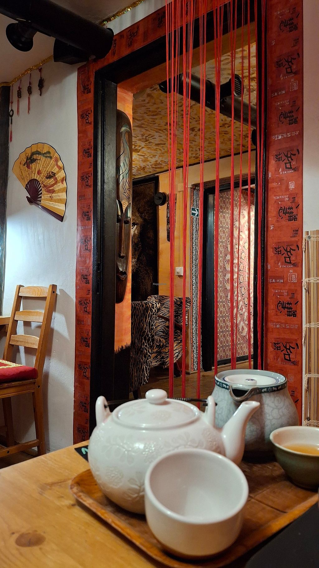 A hidden tea house offering a wide selection of teas, most of which are naturally vegan, with some options that can be made vegan by request. Serves snacks with vegan options such as a plate with hummus, olive oil, olives, tomatoes, and warmed Arabic bread. Also offers coffee that can be ordered with soya milk. Open Mon-Sun 14:00-22:00.