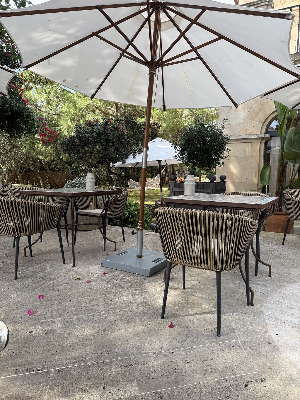We had dinner in the magical romantic outside setting, surrounded by trees, flowers, birds and bats as the evening drew on. Only 5 mins walk from the centre of Santanyi but you feel in the countryside. Food was sublime and easy to find vegan options as everything well noted. Price was reasonable for quality of food, service and setting.