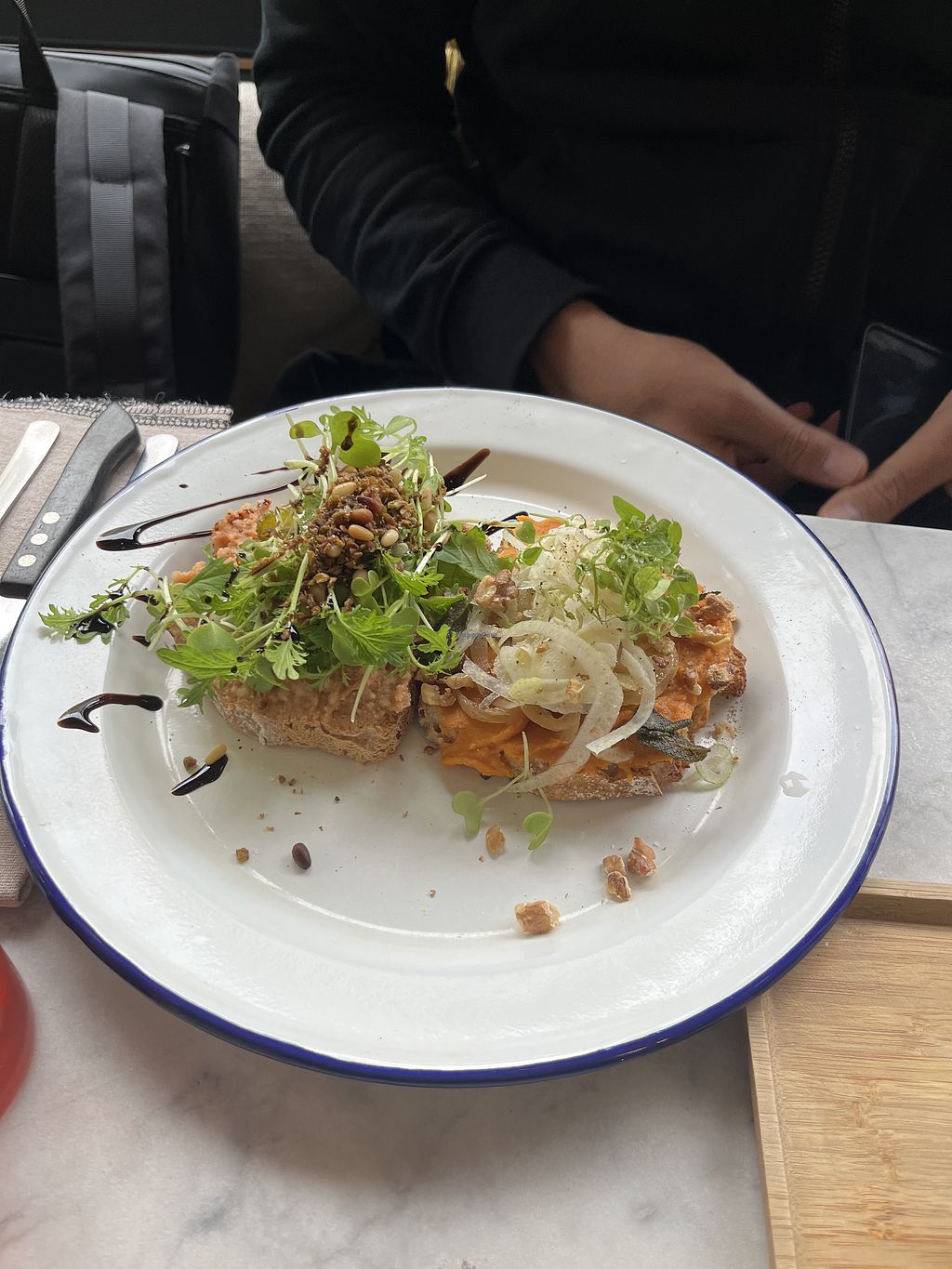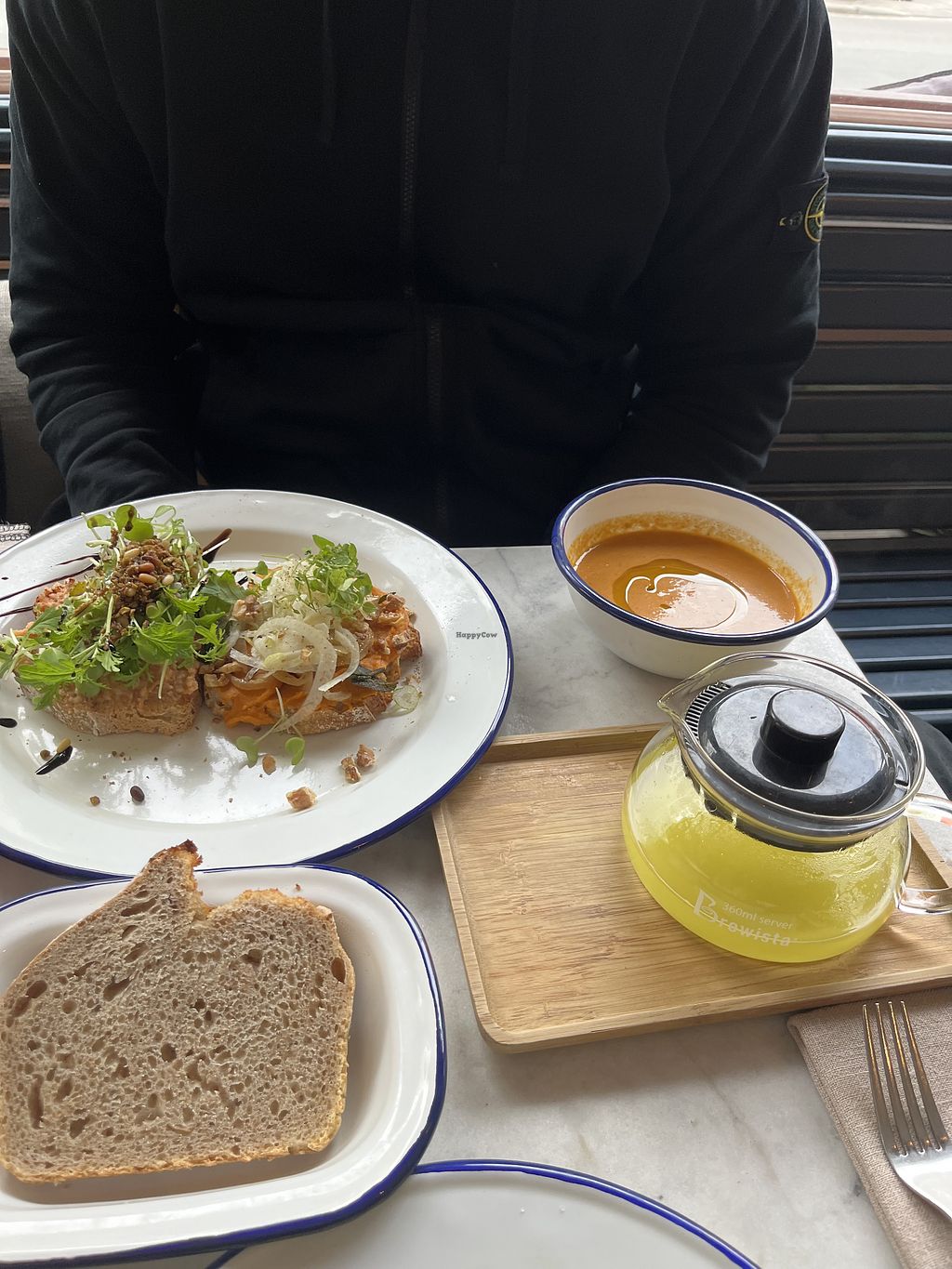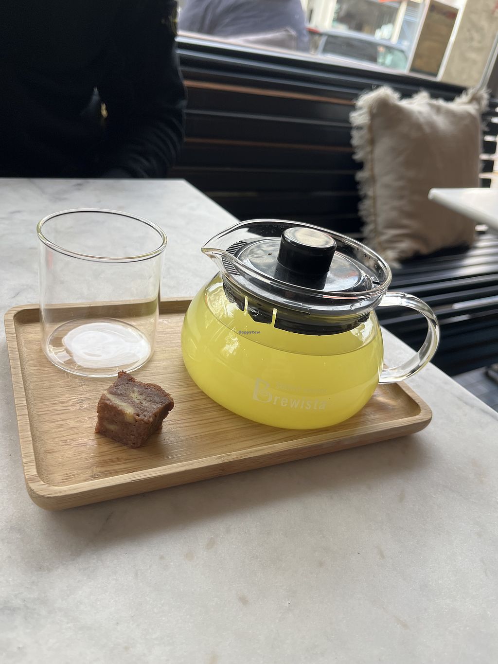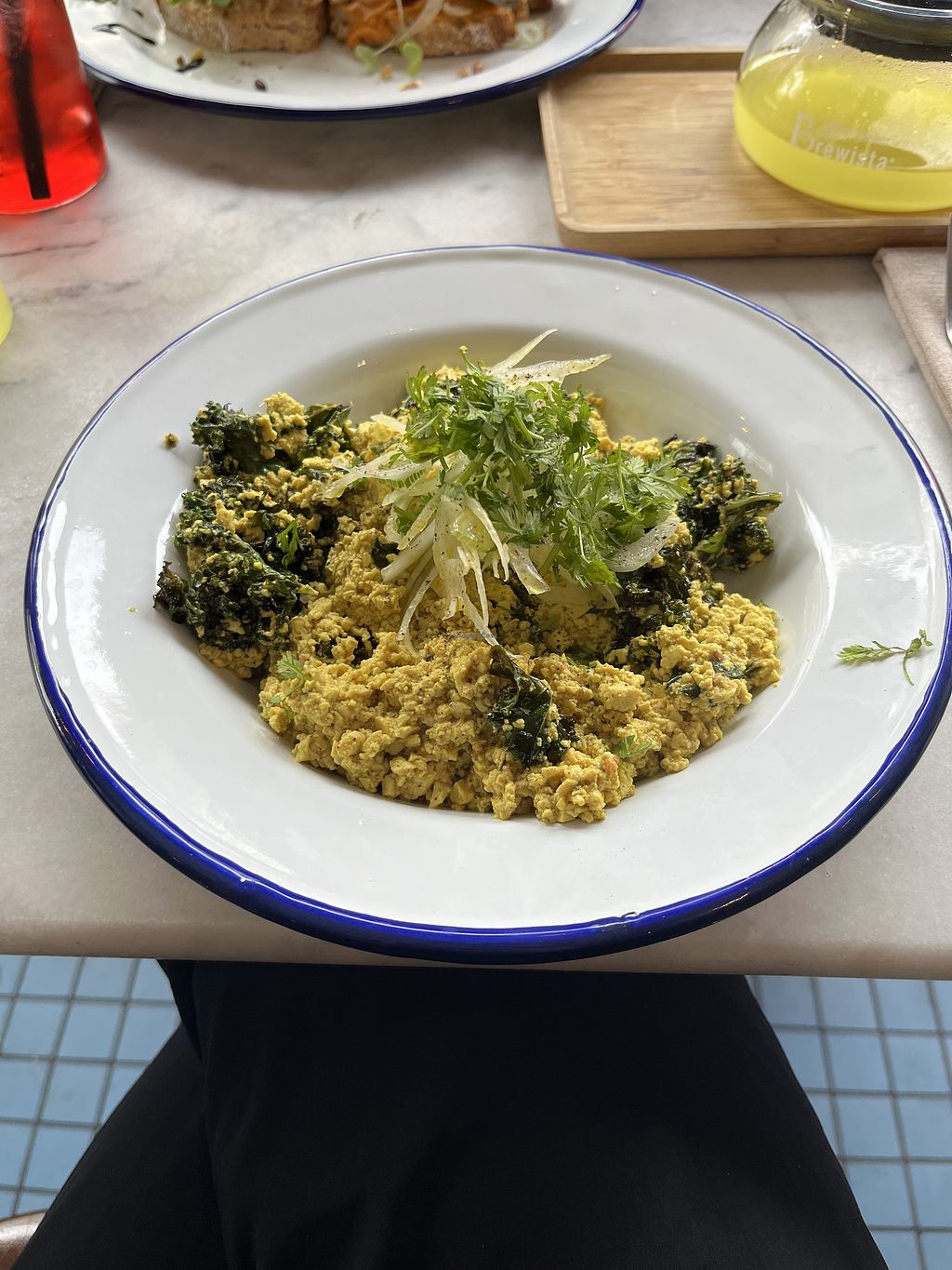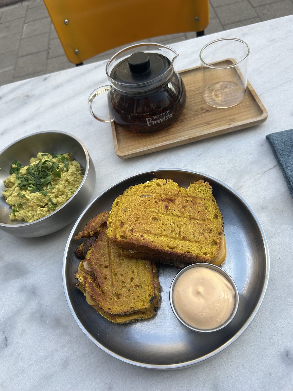 Kimchi Croque 16€ extra scrambled tofu 5€ Fruit tea 5€