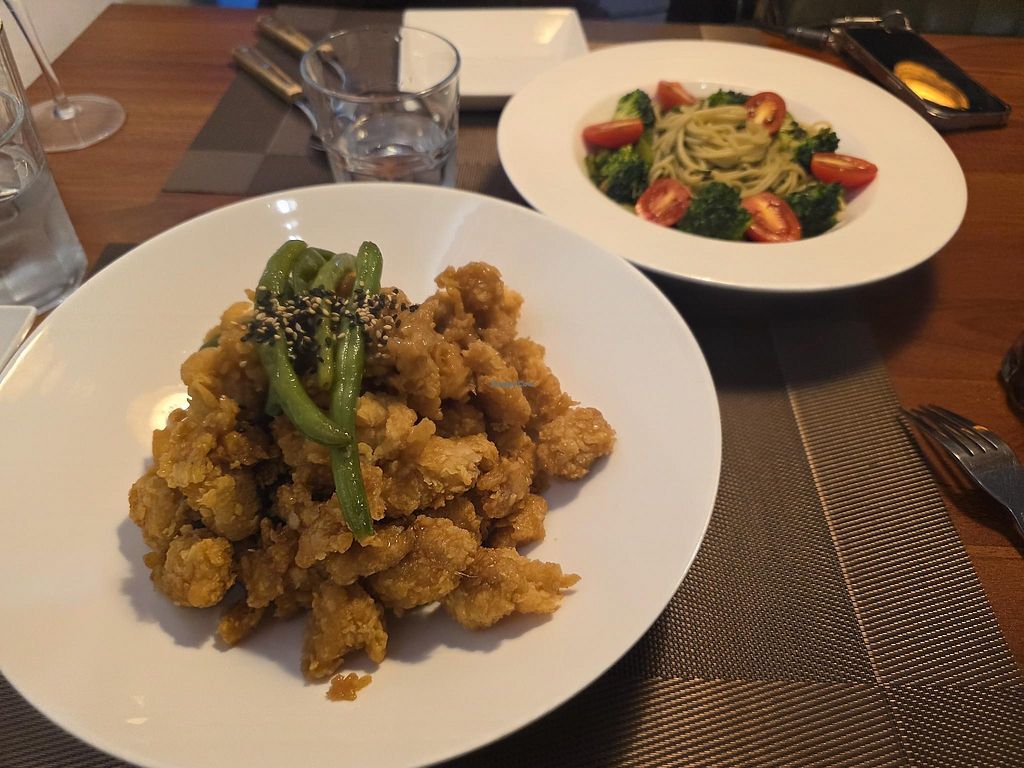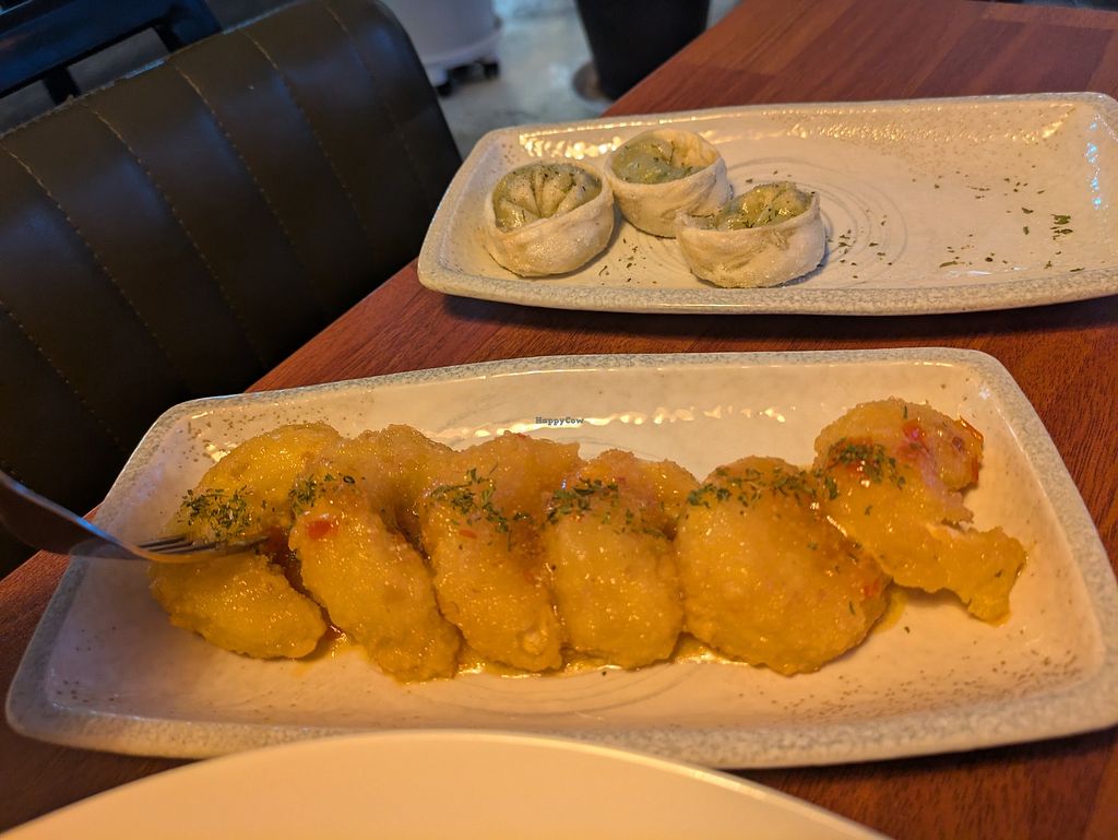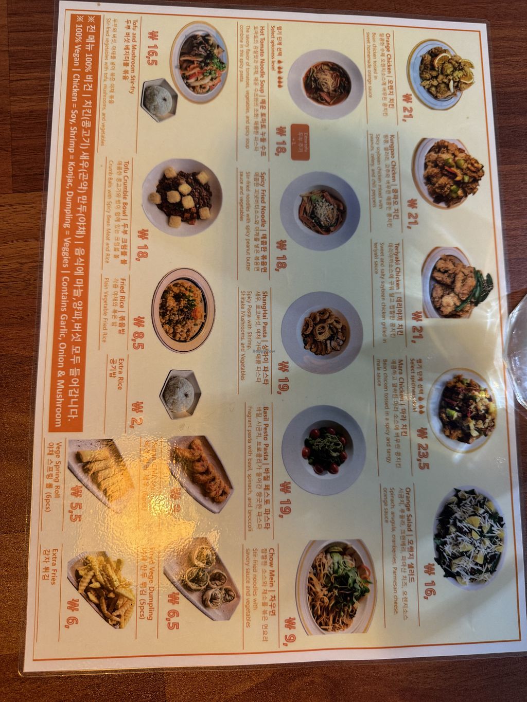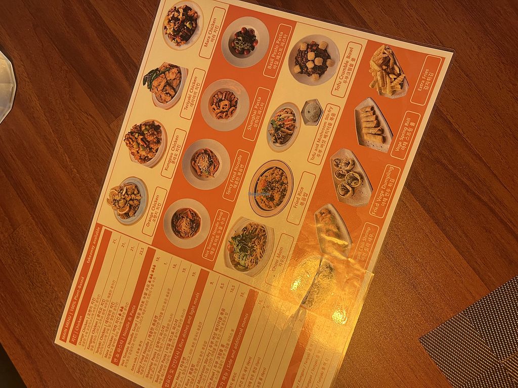Food menu (the light is covering the vegan shrimp)