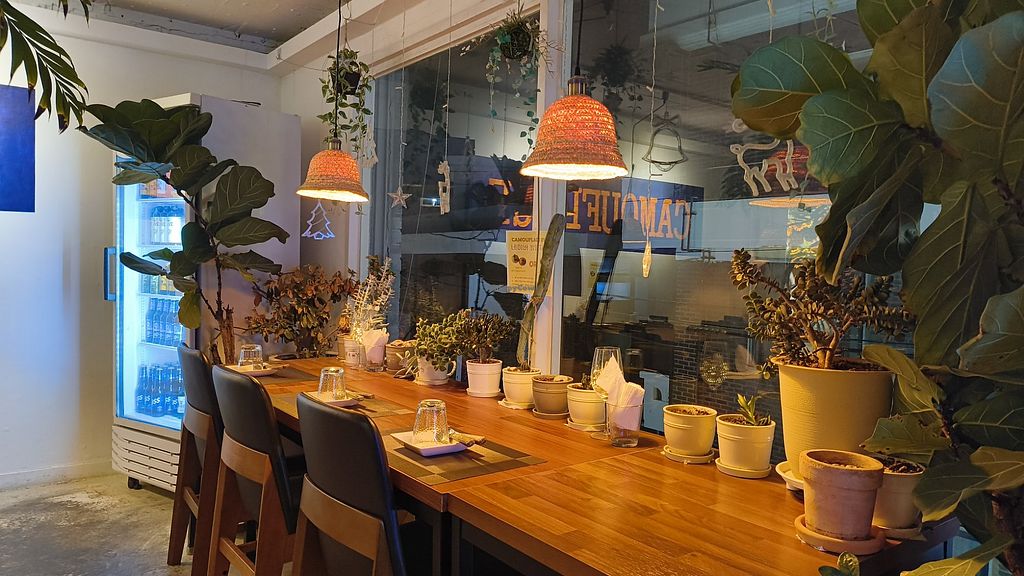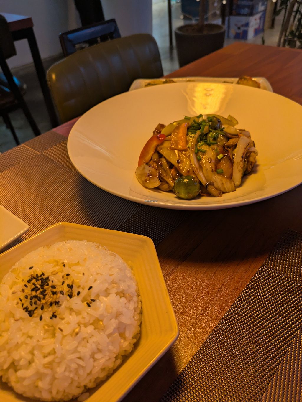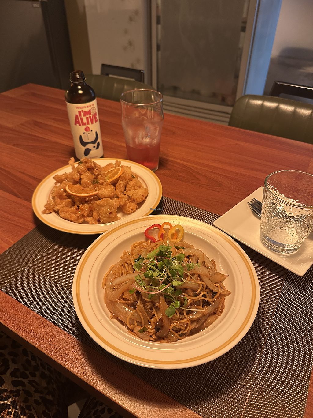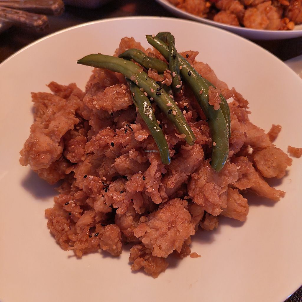Food menu (the light is covering the vegan shrimp)