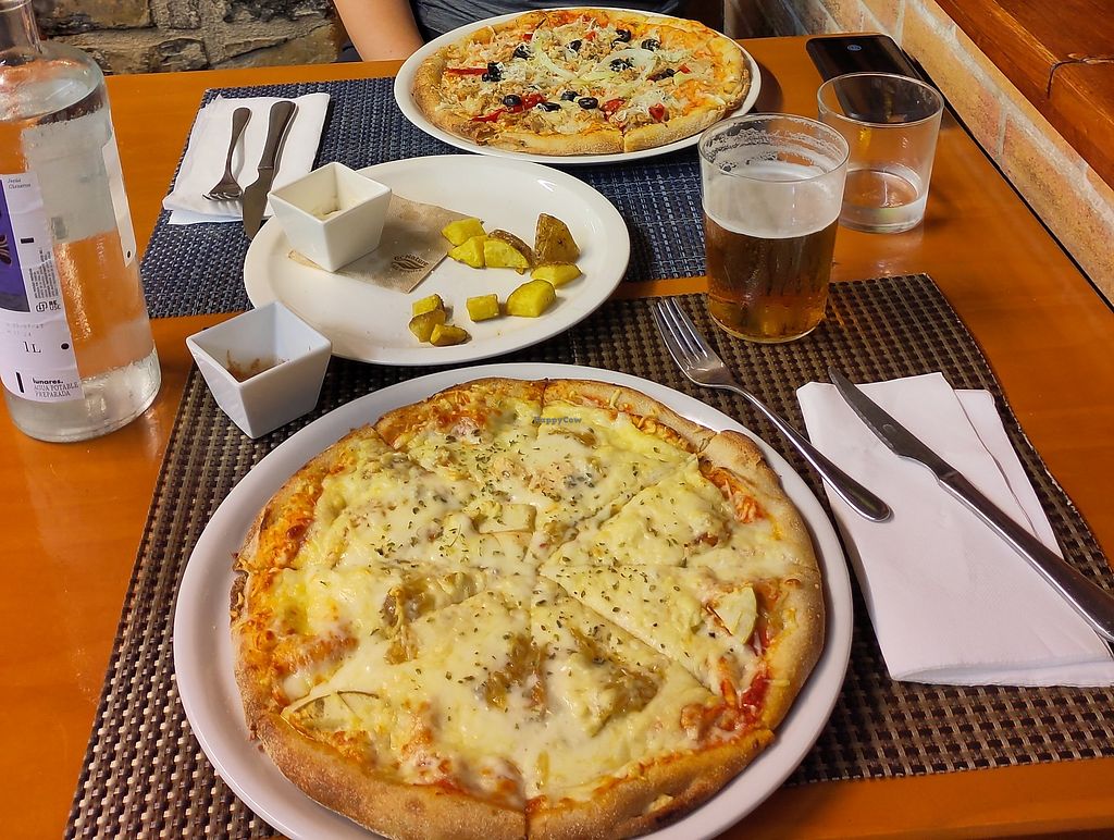 Serves meat, vegan options available. Bar & restaurant at a camping site offering vegan choices such as vegetable tempura, vegan burger, pizzas with vegan cheese and a seitan sandwich. Specify vegan when ordering. Open 8:30am-11:30pm during peak season, 12pm-4pm, 6pm-11pm during off season.