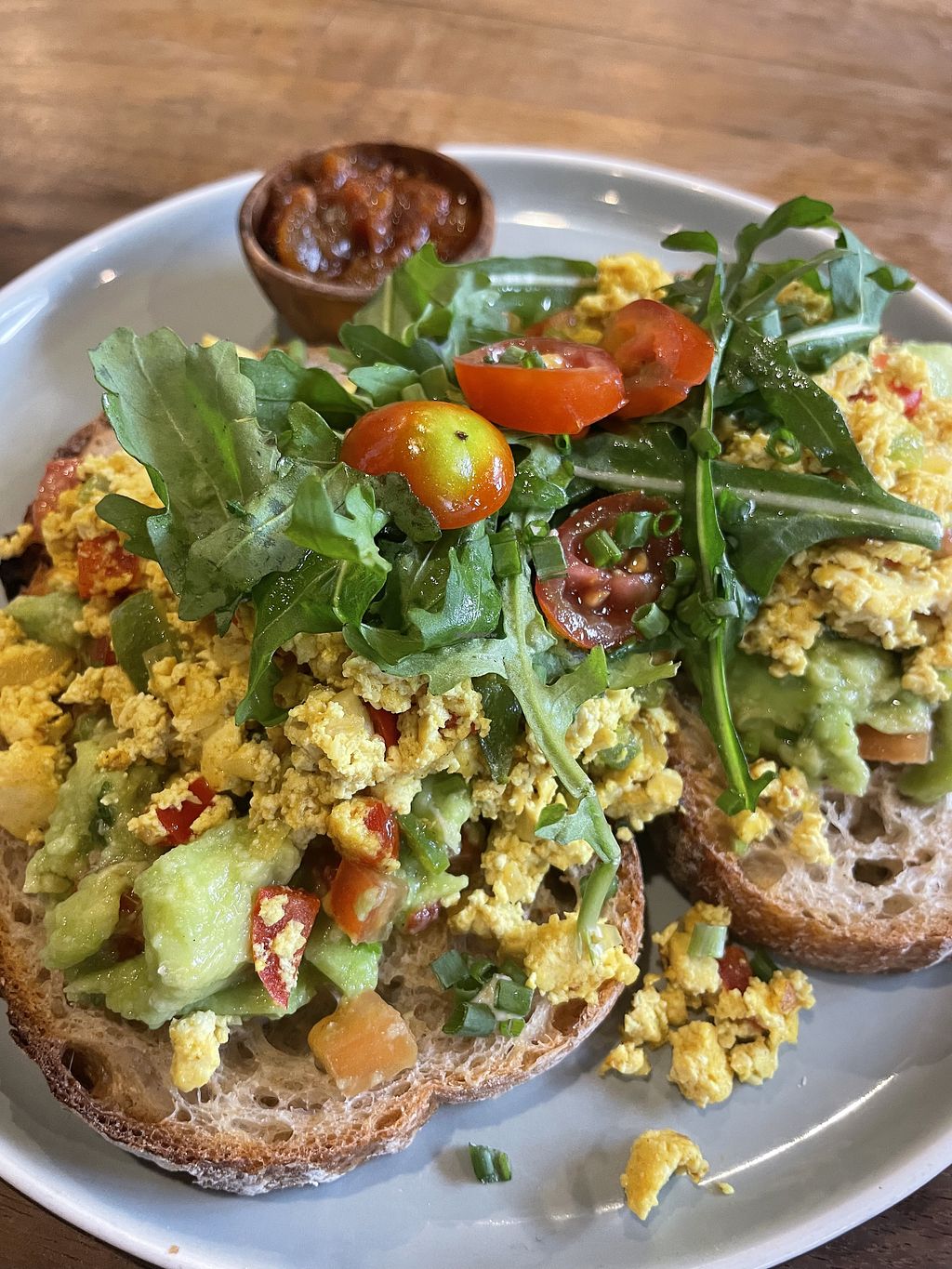 Pros: Sourdough toasted , Smashed avo tofu scramble , Prices