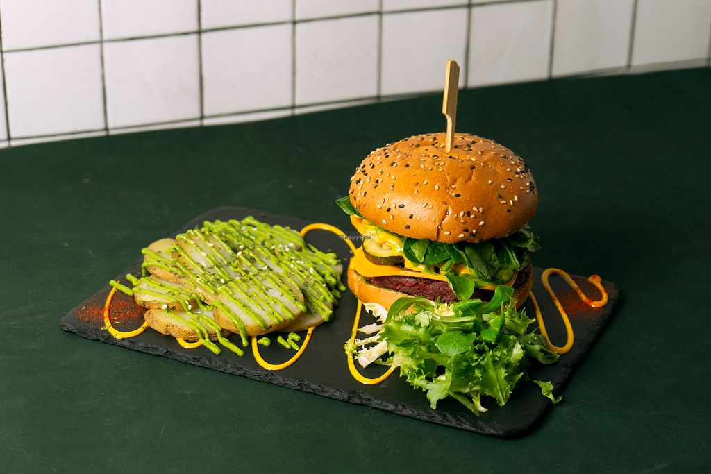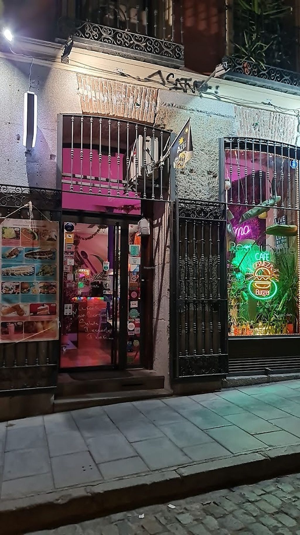 Serves meat, vegan options available. A culinary culture with a strong vegan presence and a focus on American and Mexican fusion cuisine. Vegan items are clearly marked on the menu and includes vegan tapas, veggie teques, arepas, wraps, burgers, ice cream, and more. Open Mon-Fri 14:00-17:00, Mon-Wed 19:00-23:30, Thu 17:00-23:30, Fri 19:00-00:00, Sat-Sun 13:00-23:30.