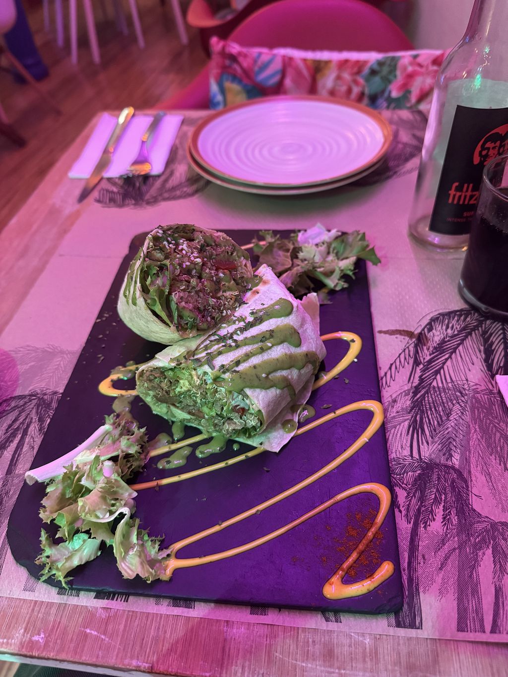 Large selection of vegan options. I had a wrap that was more of a burrito with quinoa instead of rice. It was a slightly odd fusion of flavours that I did quite like but could never fully get behind. I also had what I can only recall as an empanada, but it didn’t look like a proper one. It was filled with black beans and some tofu. This was a tough eat and not particularly enjoyable. The service was fine. The presentation of the food was a bit over complicated and fussy. I can’t recommend based on this experience but you can see some real effort is being made and so would come back if I’m ever in the area again for another shot.
