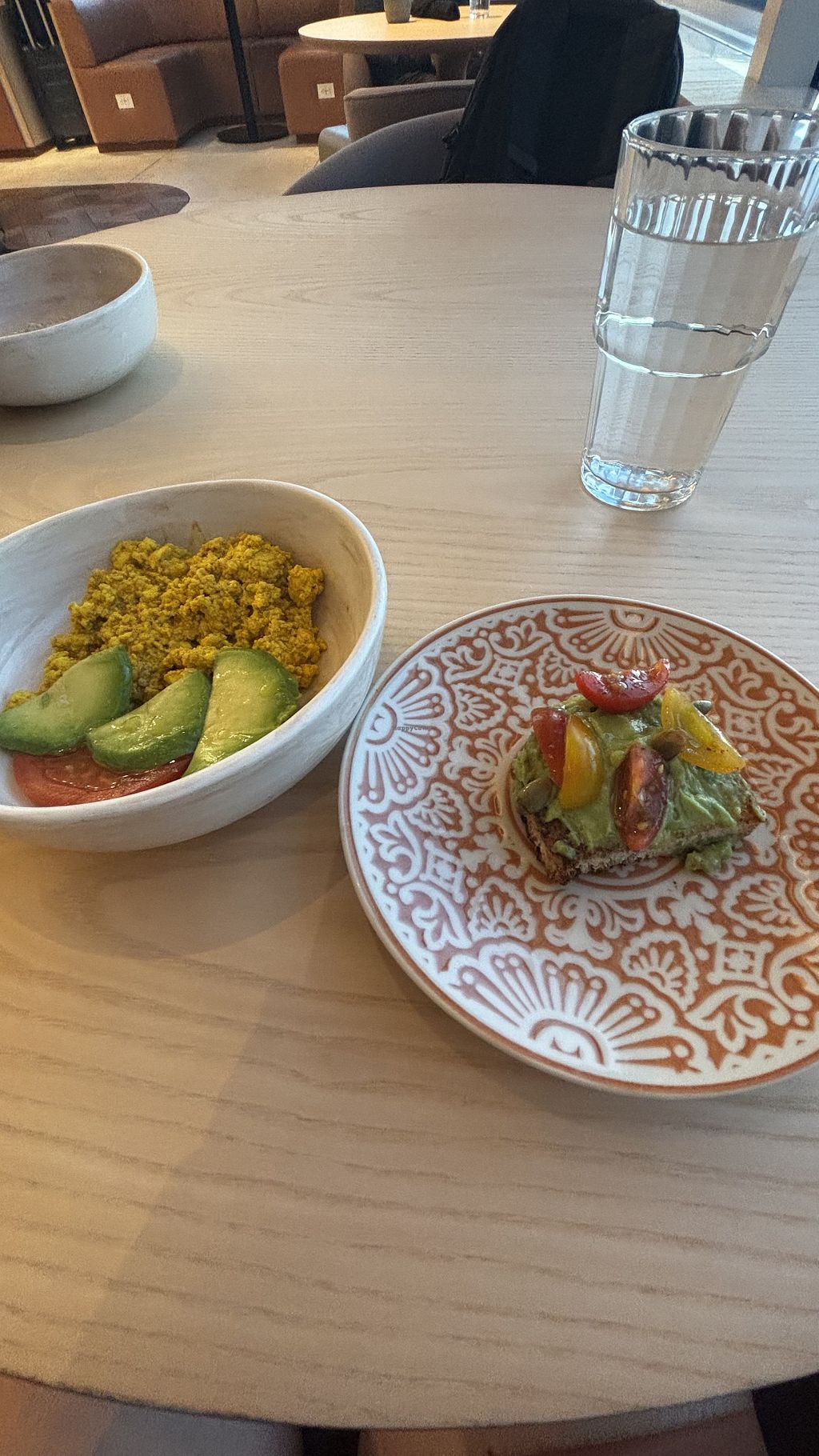 This is one of the better airport lounges I have been in. Capital One clearly makes an effort for veg friendly options. Went in the morning, you use a QR code to order some food and other is available at the counter. Has almond and oat milk. They had a tofu scramble, oats, small toasts among other things. Coffee was okay. Very clean.