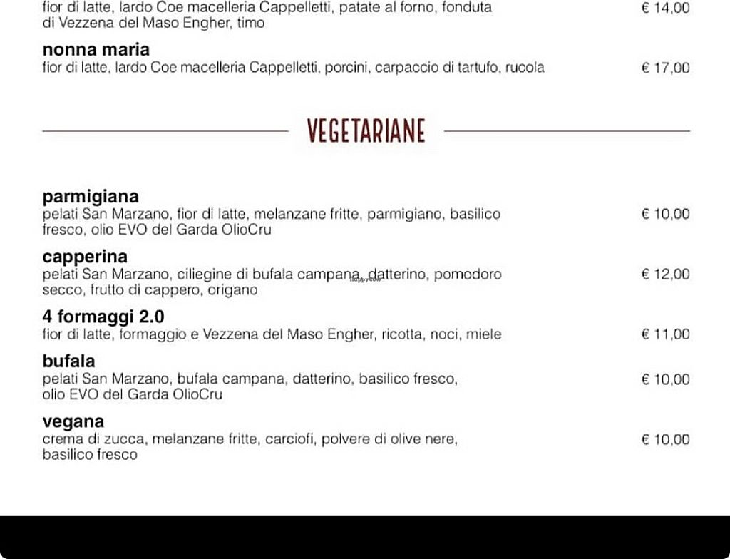 Serves meat, vegan options available. Pizzeria with vegetarian menu section that features vegan pizzas with various vegetable toppings. Please send additional information and updates to HappyCow. Open Tue-Sun 18:30-22:30. Closed Mon.