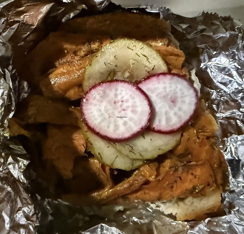 So many choices of fantastic sweet and savory vegan offerings. Very rich and filling, I like the chocolate hazelnut cake and the carrot “lox”. Caring service with a wonderful story behind the business. Feels good to support these folks.