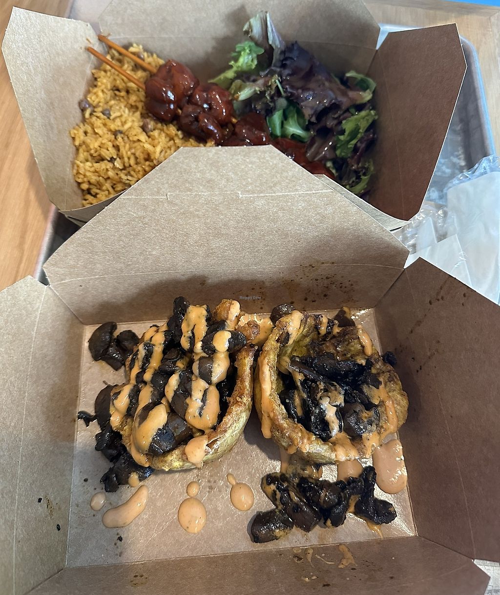 Got the sampler platter (w the bbq chickn skewers)… so delicious and flavorful! Will be going back😄