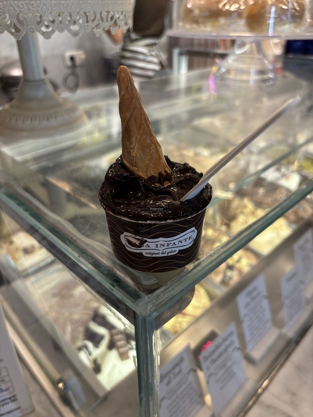 Gelateria with vegan gelato flavors. All fruit flavors (except coconut) and the dark chocolate are vegan according to the staff. Recommended to try the frutti di bosco and melon flavors. Open Mon 13:00-21:00, Tue-Thu 10:30-22:00, Fri 10:30-23:00, Sat 10:30-01:30, Sun 10:30-23:00.