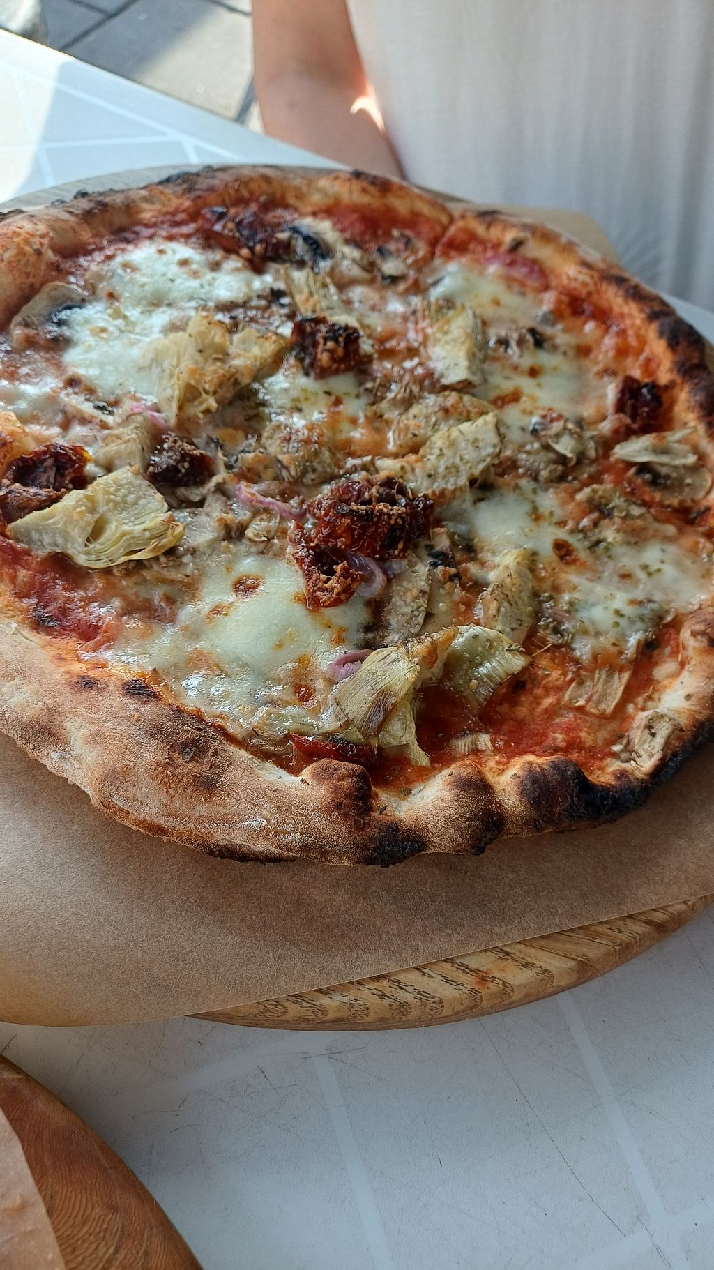 I loved this place. Location, service. The most important thing is that all the pizza can be vegan. I wanted the "Margherita" but the owner suggested the Italian one. It was nice with artichoke and sun dried tomatoes. I loved it (I am Italian so I am picky with pizza)