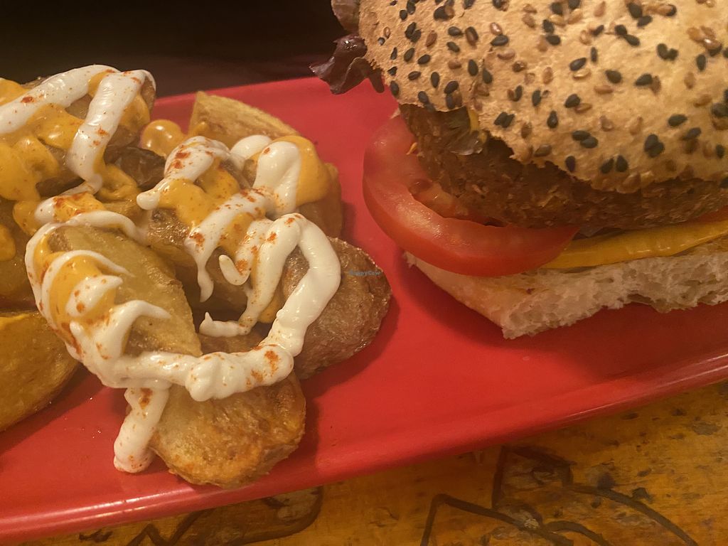 Read moreMe and my husband shared 2 burgers. I picked the black bean burger which tasted amazing. My husband picked the spicy one, the patty wasn't as good as a the black bean.