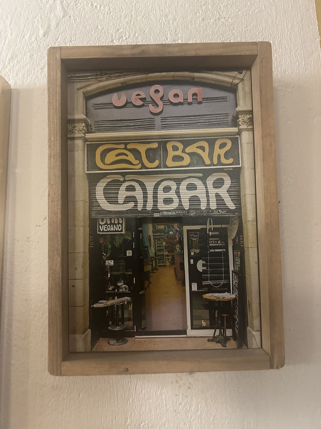 Independant vegan bar in Barcelona. The best tof-ish I have ever had. Make the trip wherever you are in Barcelona - totally worth it. Friendly staff and the occasional not cat (dog).